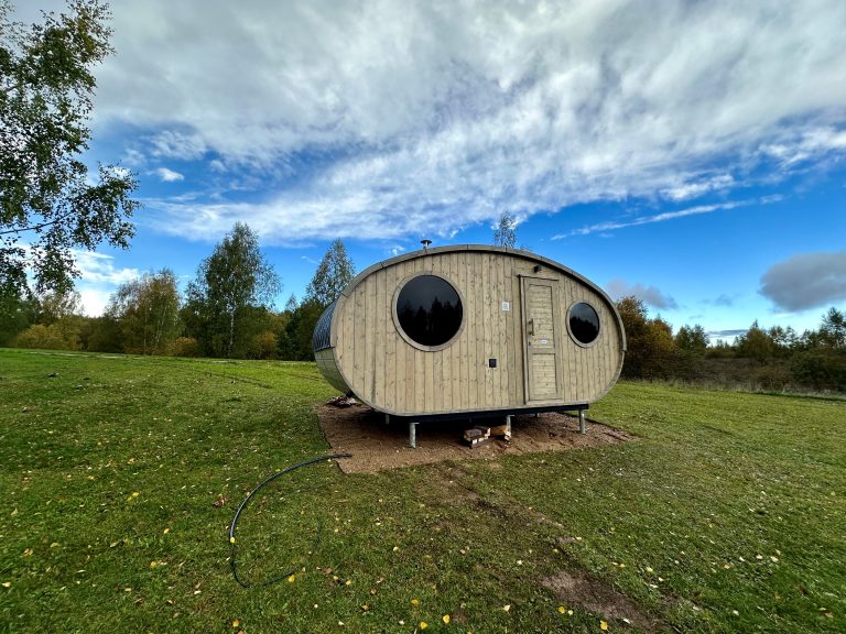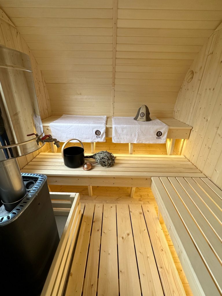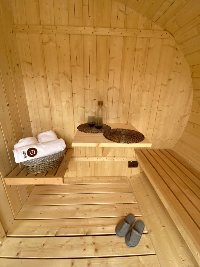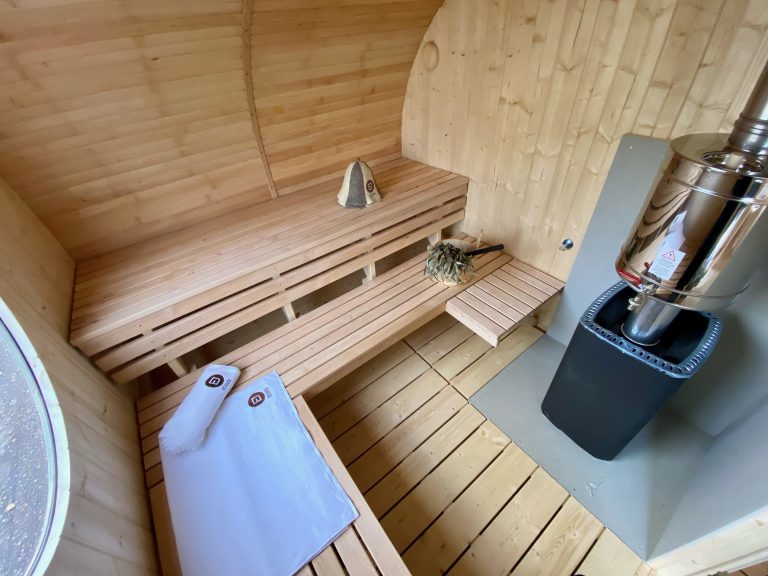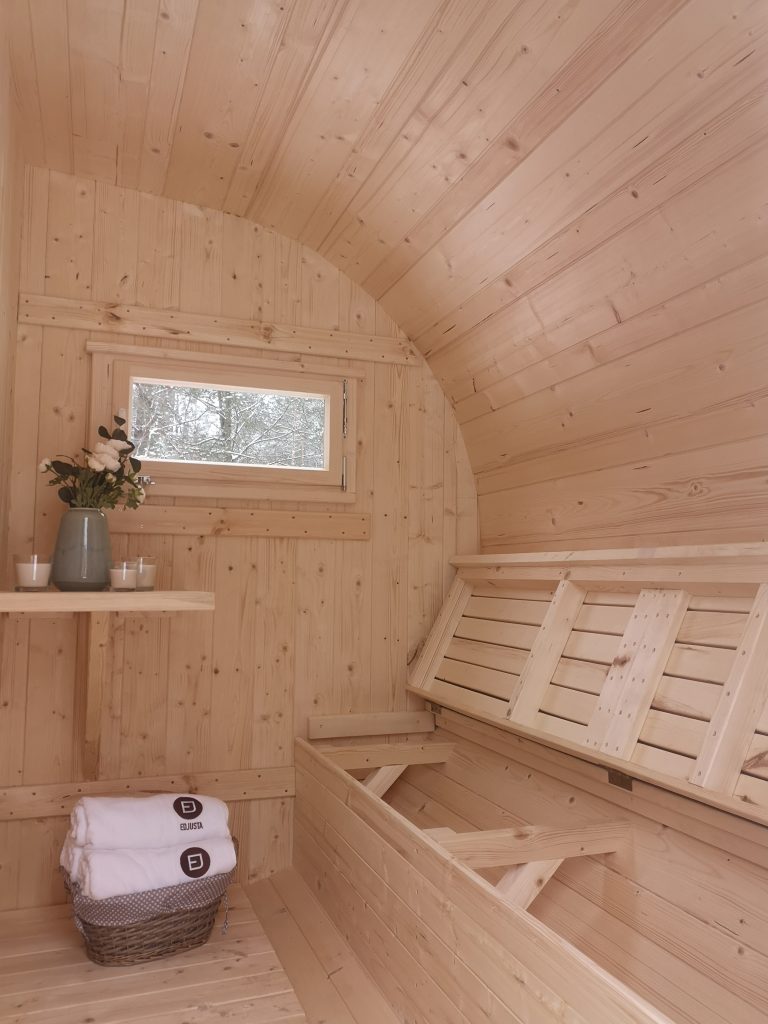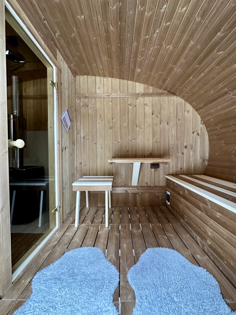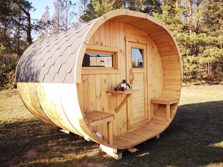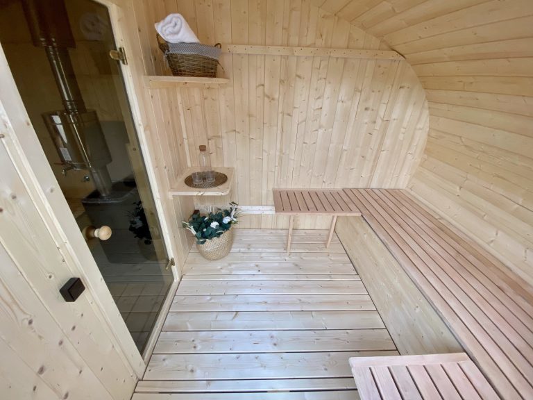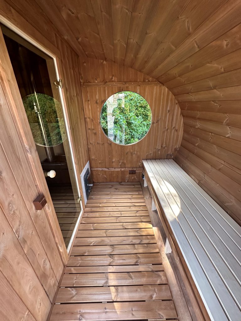 Dies ist ein völlig neues Modell, bei dem die Breite der Sauna erweitert wurde. Optisch ist sie völlig anders und hebt sich sofort von den Standard-Saunen ab. Die ovale Sauna kann als zusätzliche Option mit einer großen Außenterrasse ausgestattet werden. Diese neue Struktur bietet ein Maximum an nutzbarem Raum bei weniger zu beheizender Fläche.