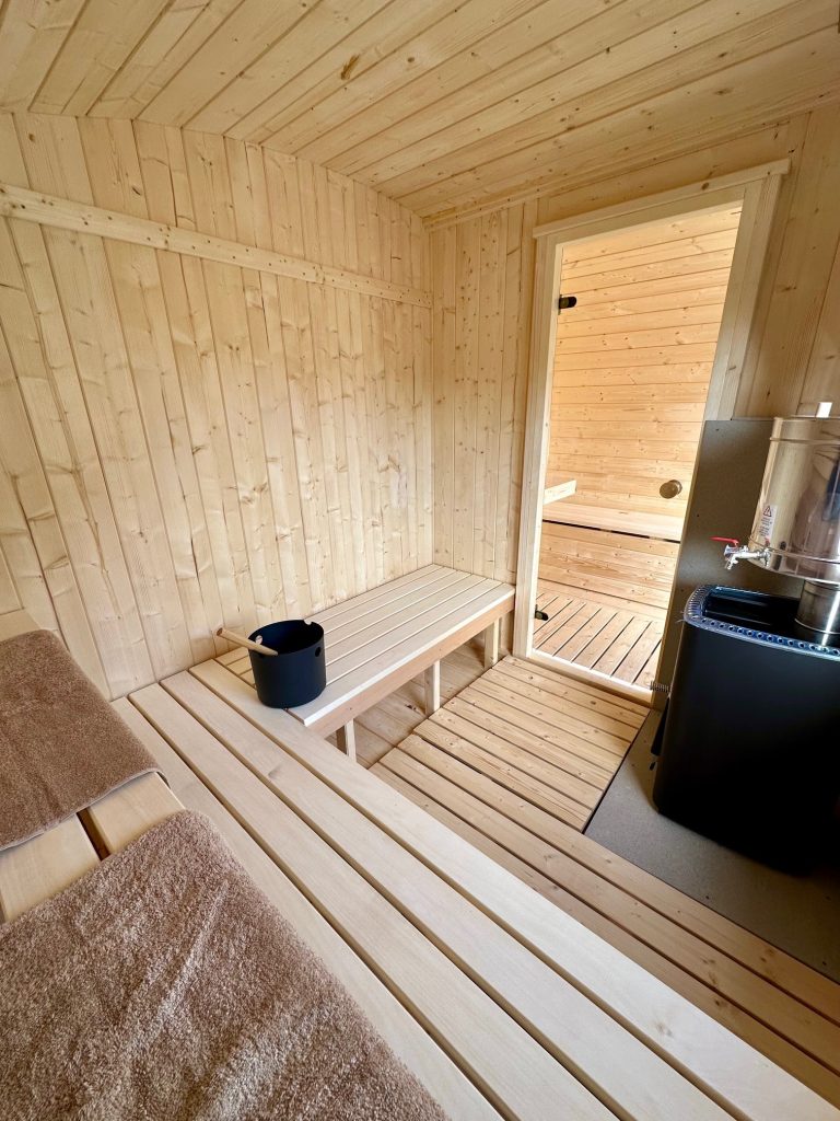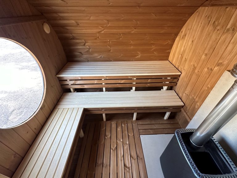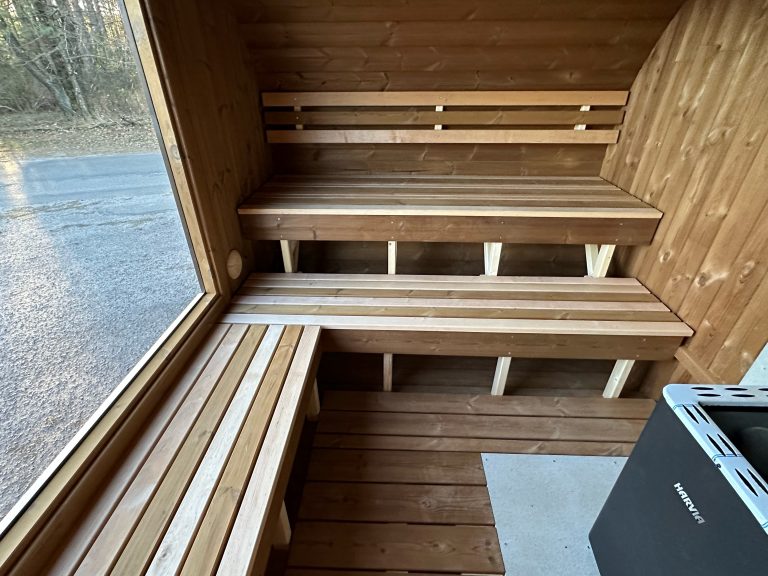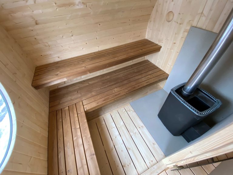 - Weiche Hartholzverkleidung für das Innere der Sauna.