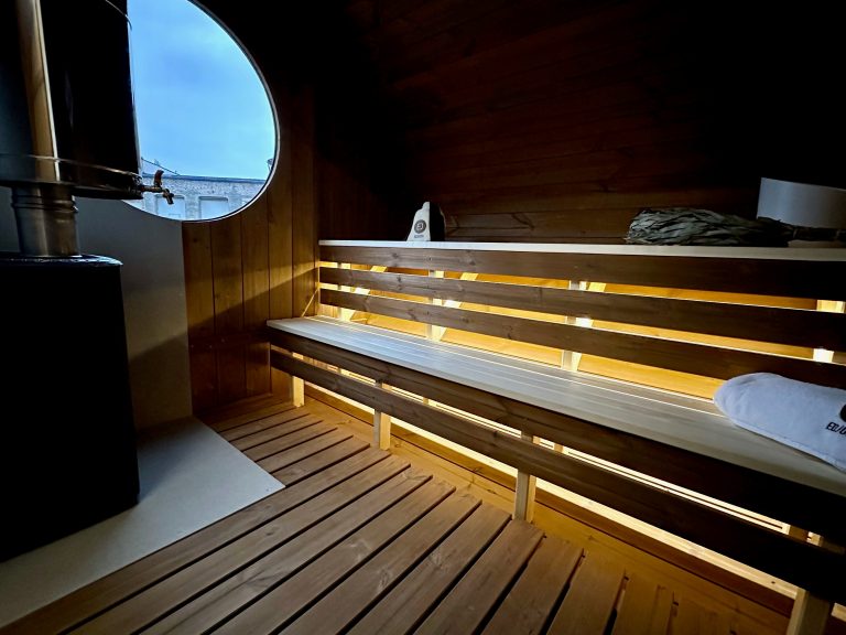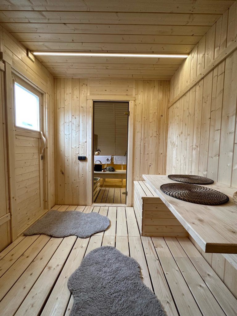 - LED-Beleuchtung unter den Bänken im Saunabereich.