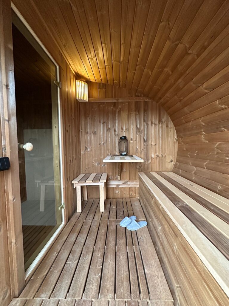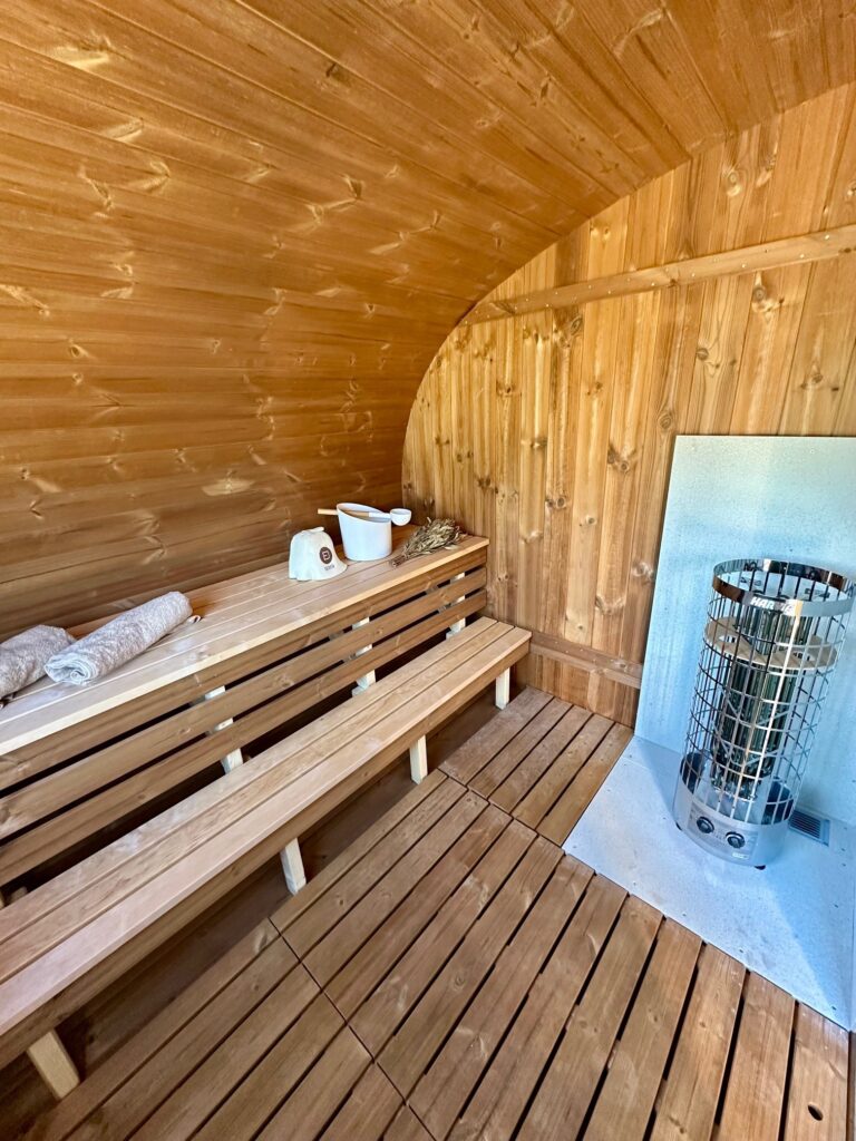 - Weiche Hartholzverkleidung für das Innere der Sauna.