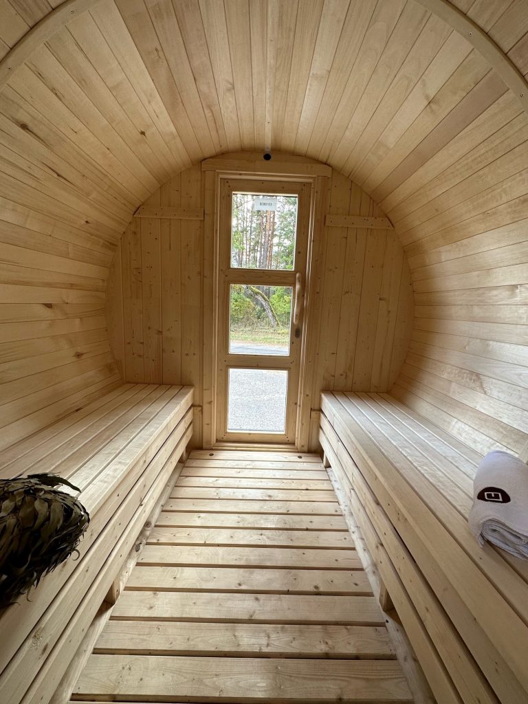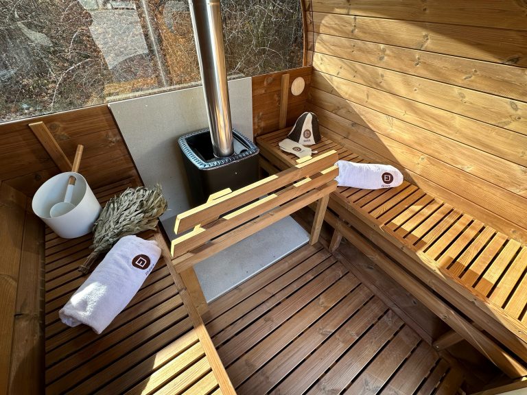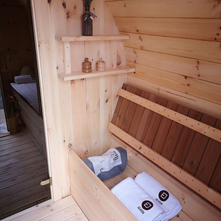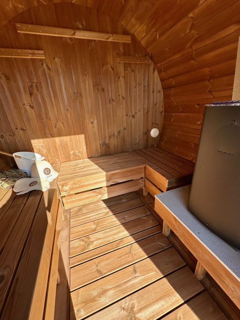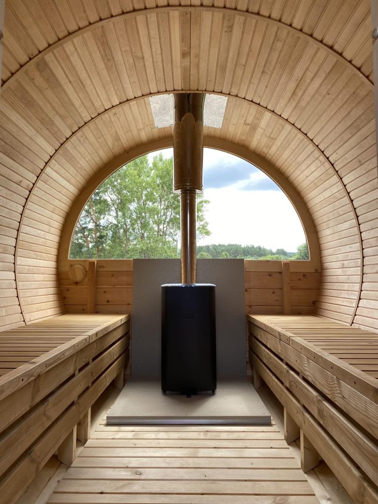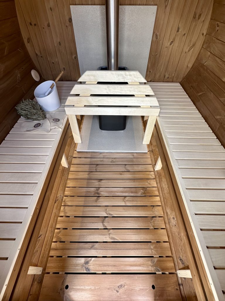 - Weiche Hartholzverkleidung für das Innere der Sauna.