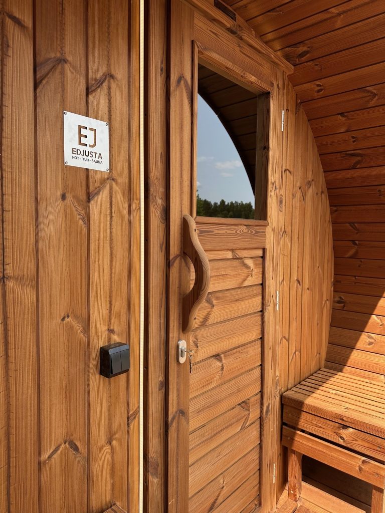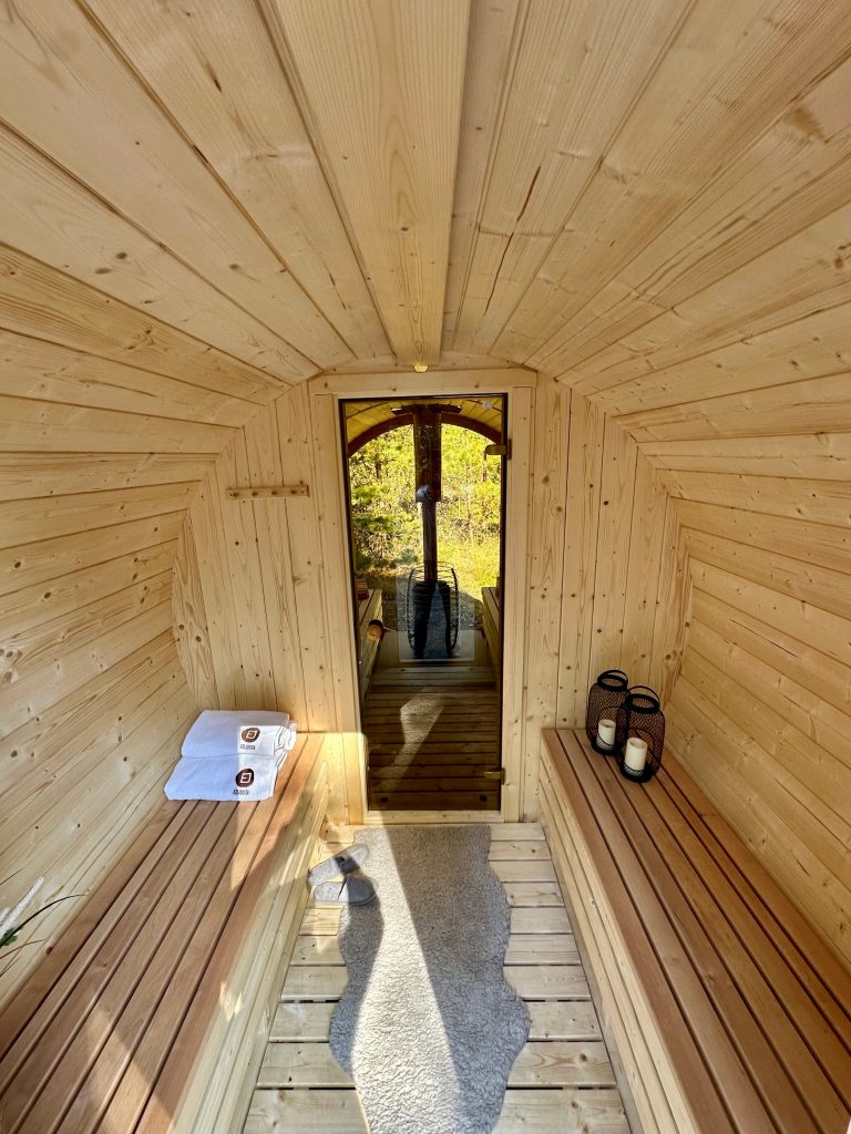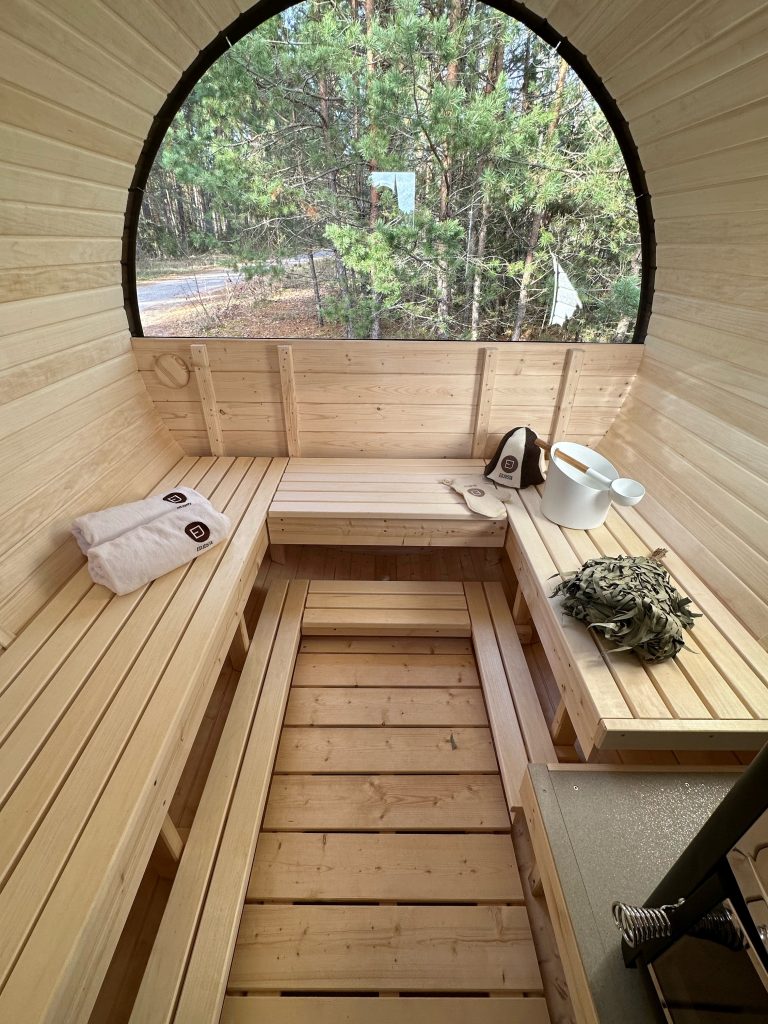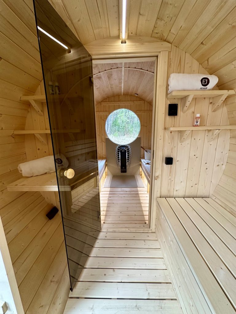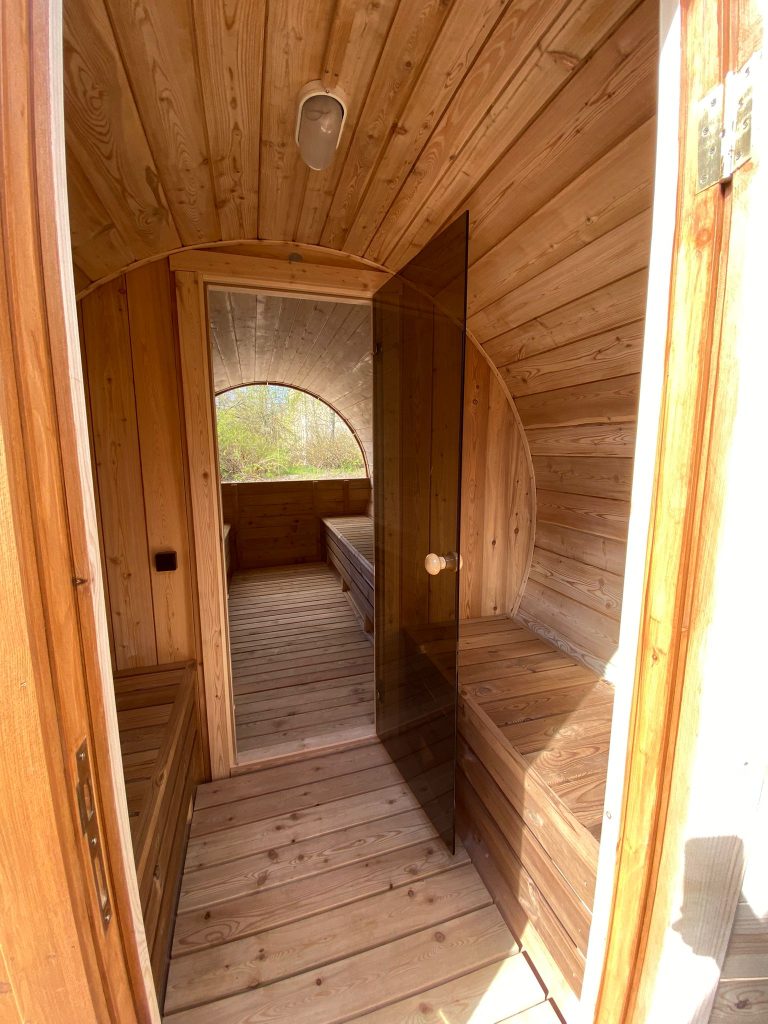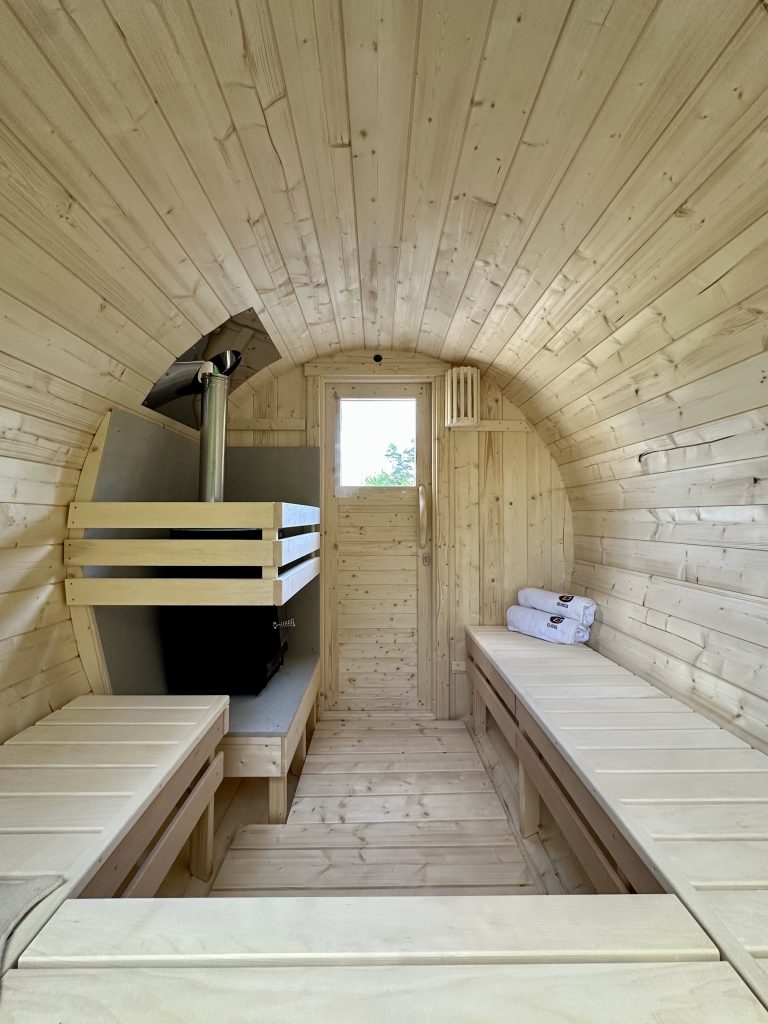 - Weiche Hartholzverkleidung für das Innere der Sauna.