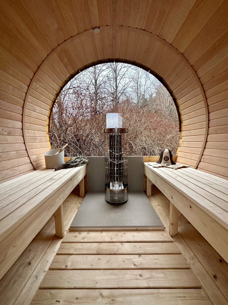 Das einzigartige runde Design der Fass-Sauna verleiht Ihrem Zuhause Persönlichkeit und ein großartiges Spa-Erlebnis. Die Zylinderform ermöglicht eine natürliche, kontinuierliche Luftzirkulation, da die Luft an den abgerundeten Wänden zurückgedrückt wird. Außerdem muss im Vergleich zu einem ähnlichen Raum mit Ecken 23% weniger Fläche beheizt werden. Dadurch erhalten Sie längere Dampfzyklen zu geringeren Kosten. Unsere Produkte sind in verschiedenen Größen, Holzarten und mit verschiedenen Optionen erhältlich. Sie können sich für eine montierte oder eine unmontierte Sauna entscheiden, für die Sie keine großen Werkzeuge benötigen, um sie in kürzester Zeit selbst zu bauen.