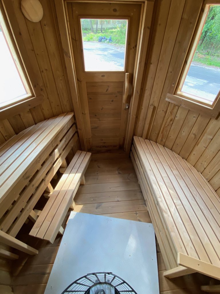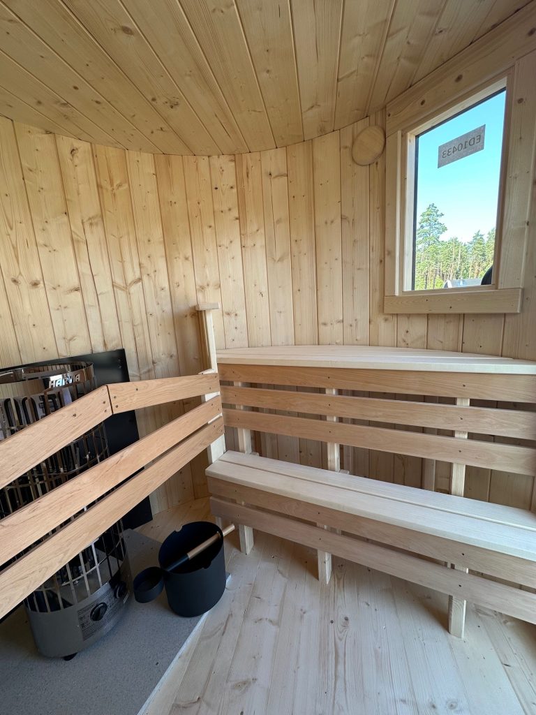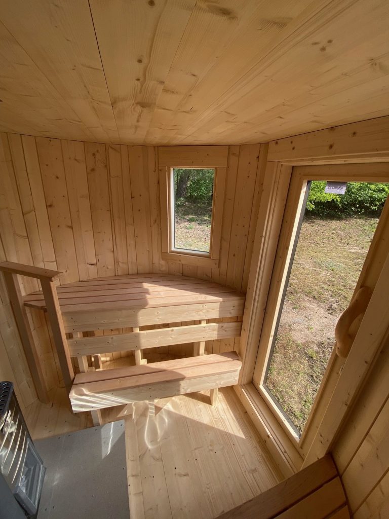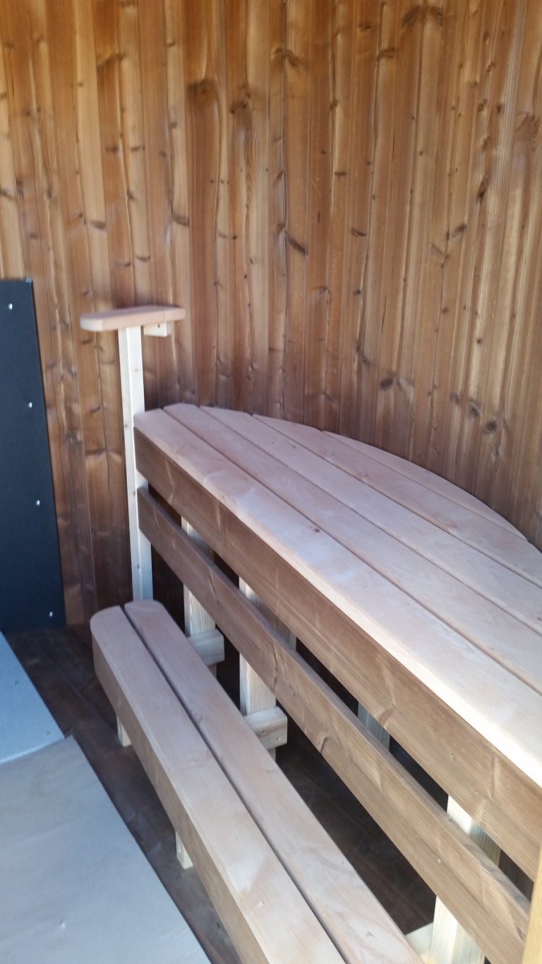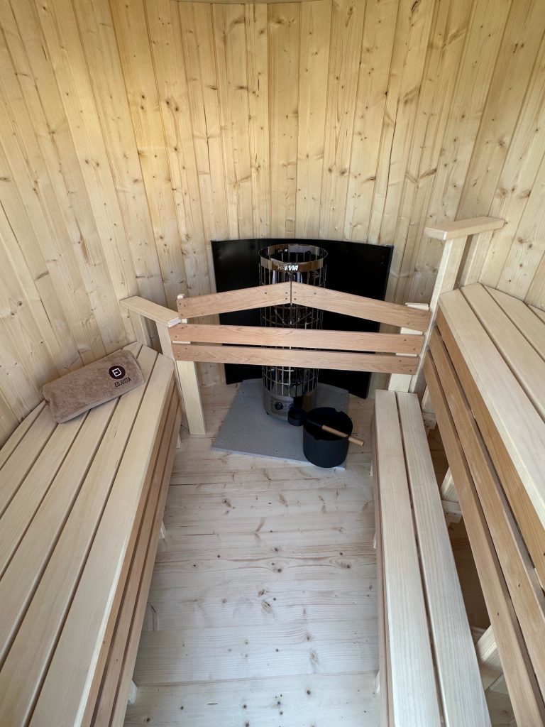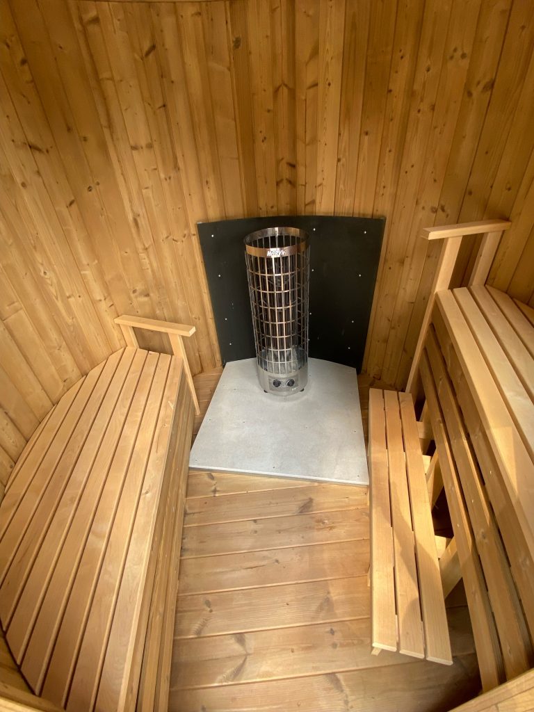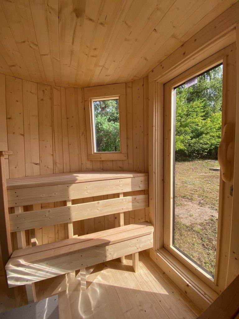 - 2 gegenüberliegende Sitzbänke aus Black Alder, Aspen oder Thermoholz.
