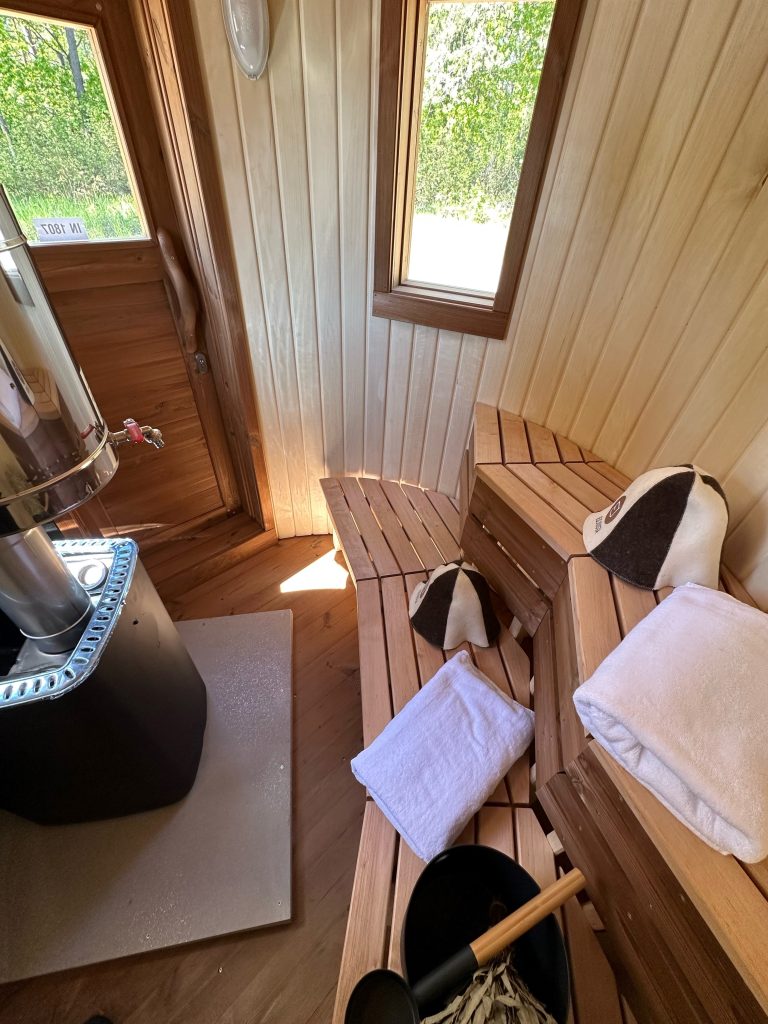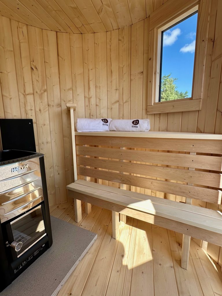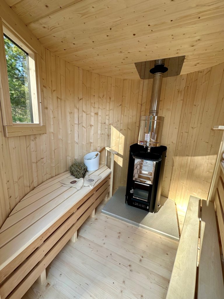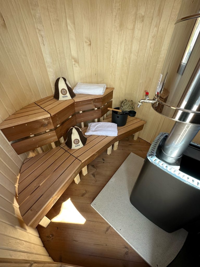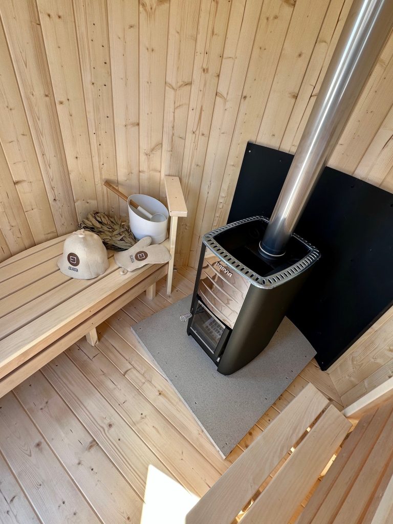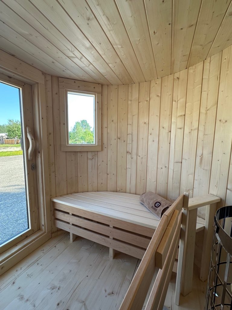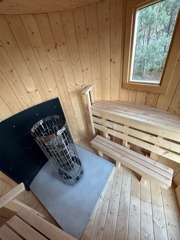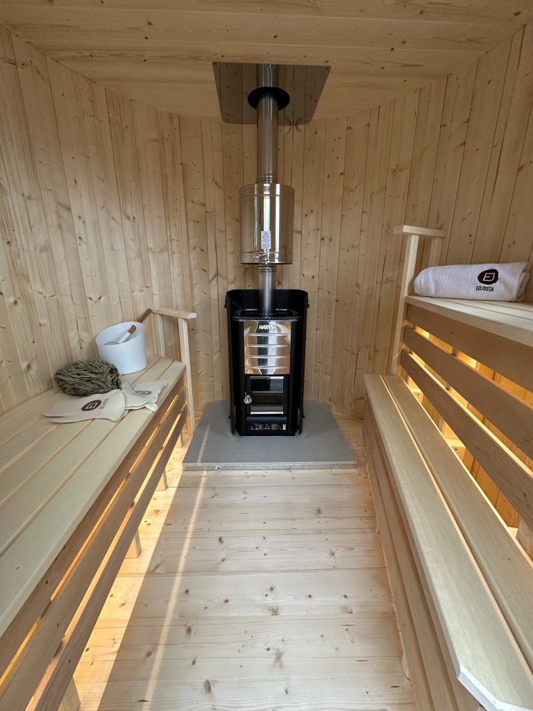 - 2 gegenüberliegende Sitzbänke aus Black Alder, Aspen oder Thermoholz.
