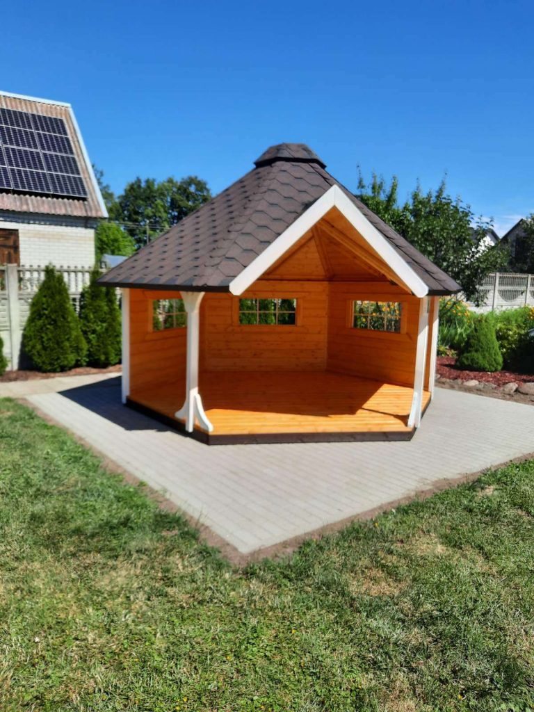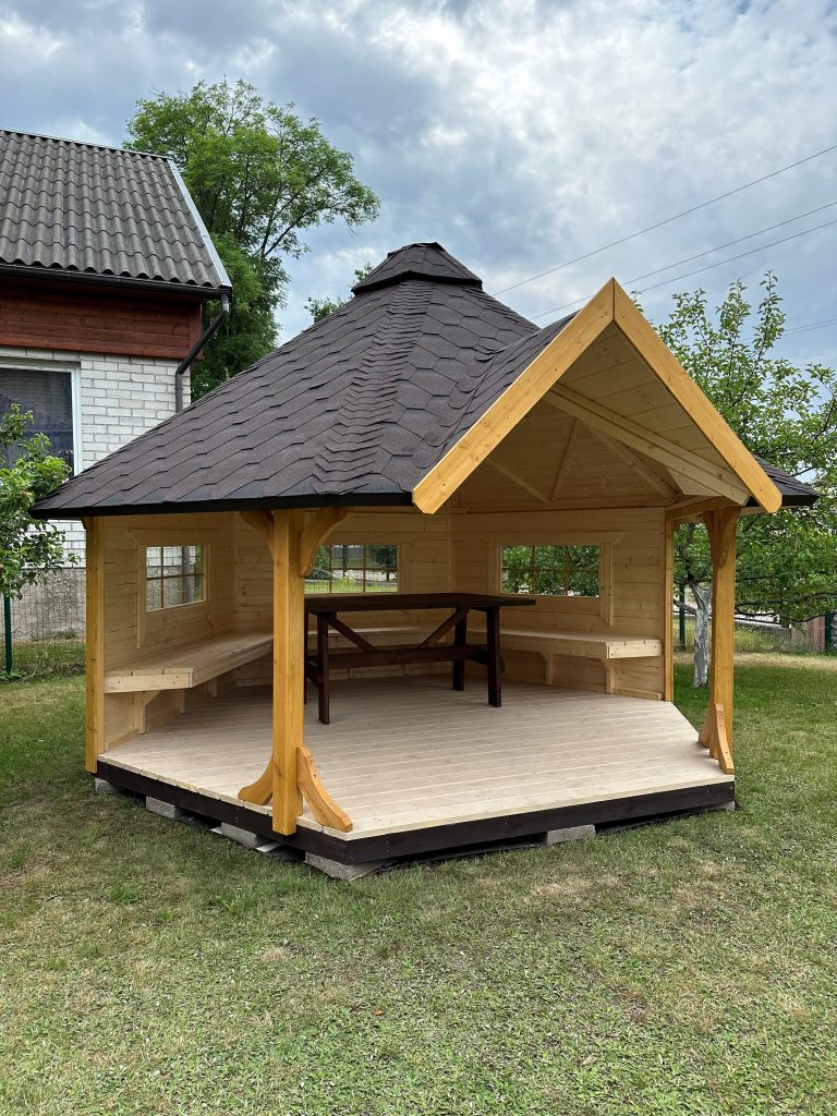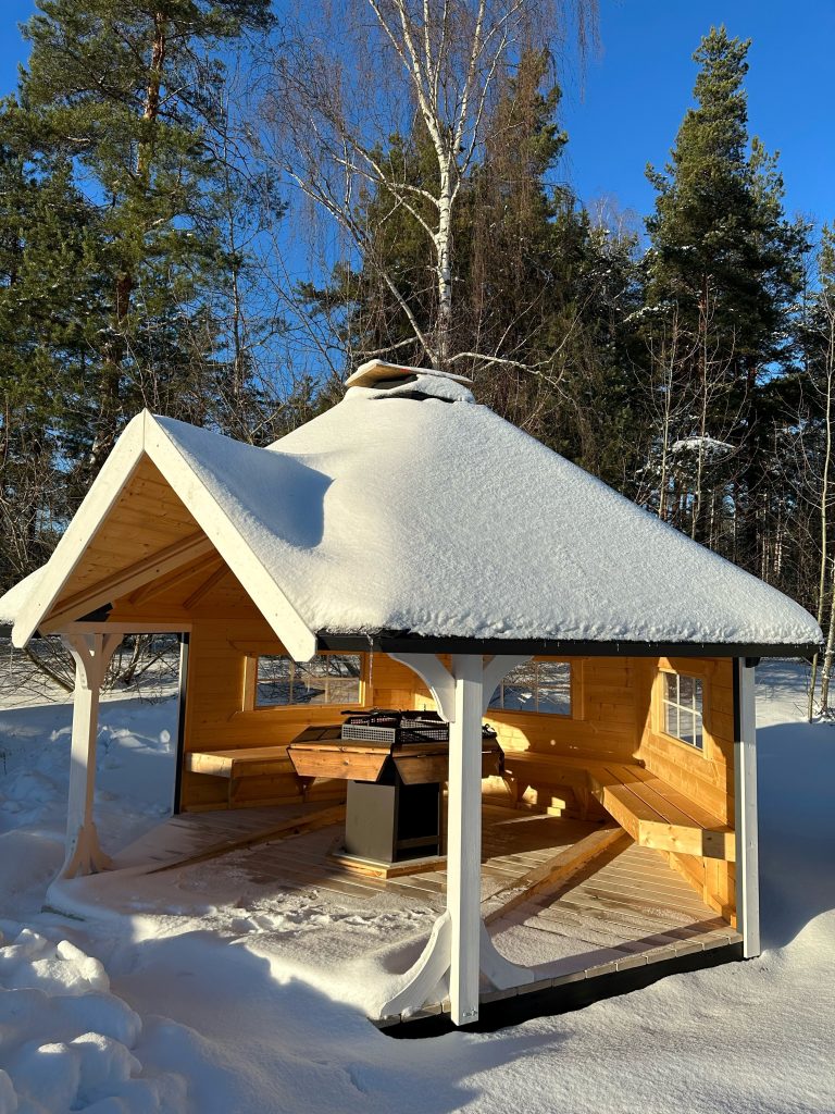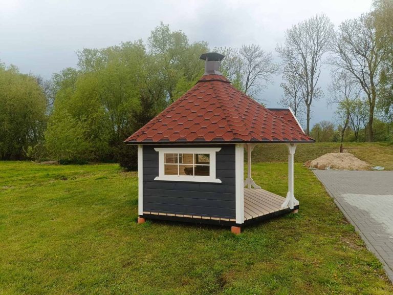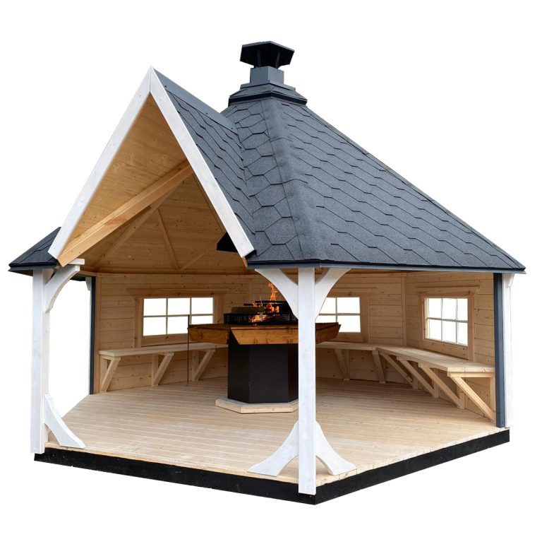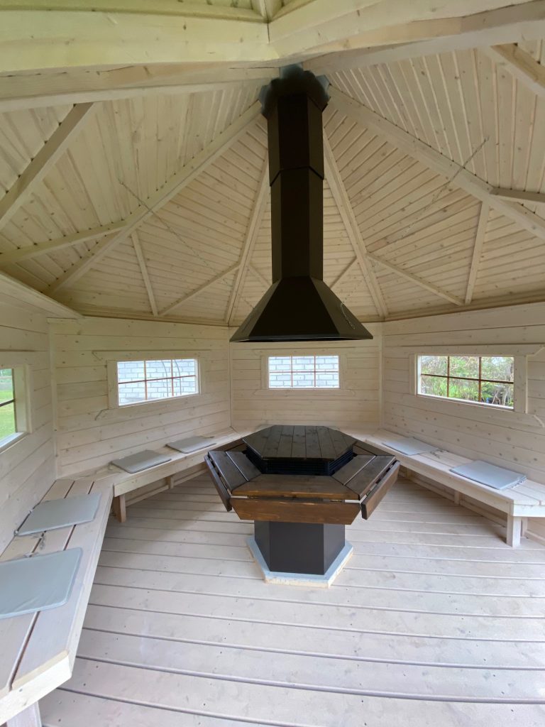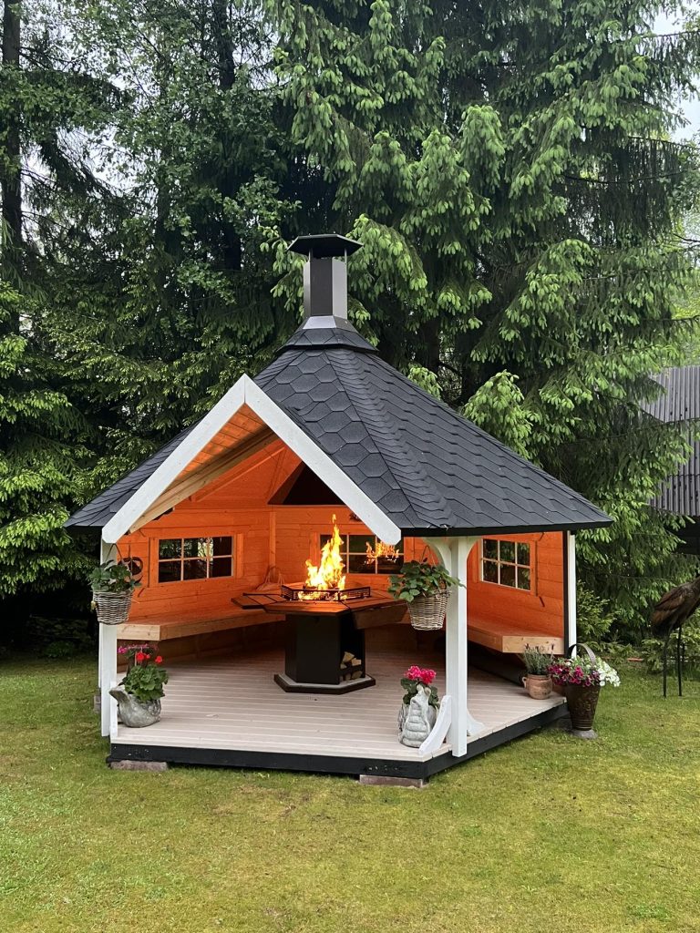 Ein offenes Grillhaus – die perfekte Lösung für alle, die gerne grillen und gesellig sind. Es ist das ganze Jahr über ein großartiger Pavillon für geselliges Beisammensein, in dem Sie Freunde und Familie bei der Zubereitung Ihrer Lieblingsgerichte genießen können. Der Clou ist der Grillofen aus Stahl, der sich in der Mitte der Pergola befindet.