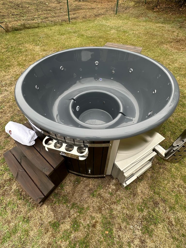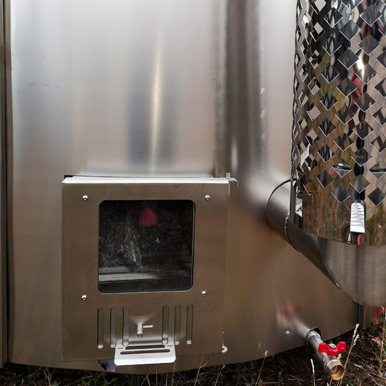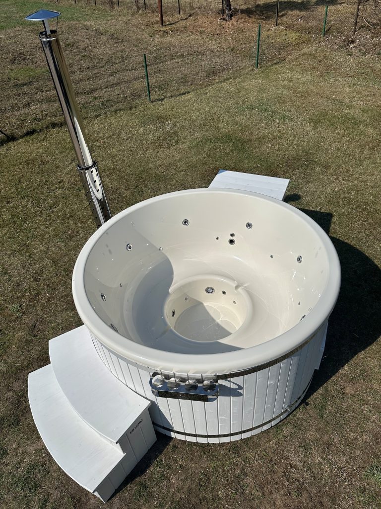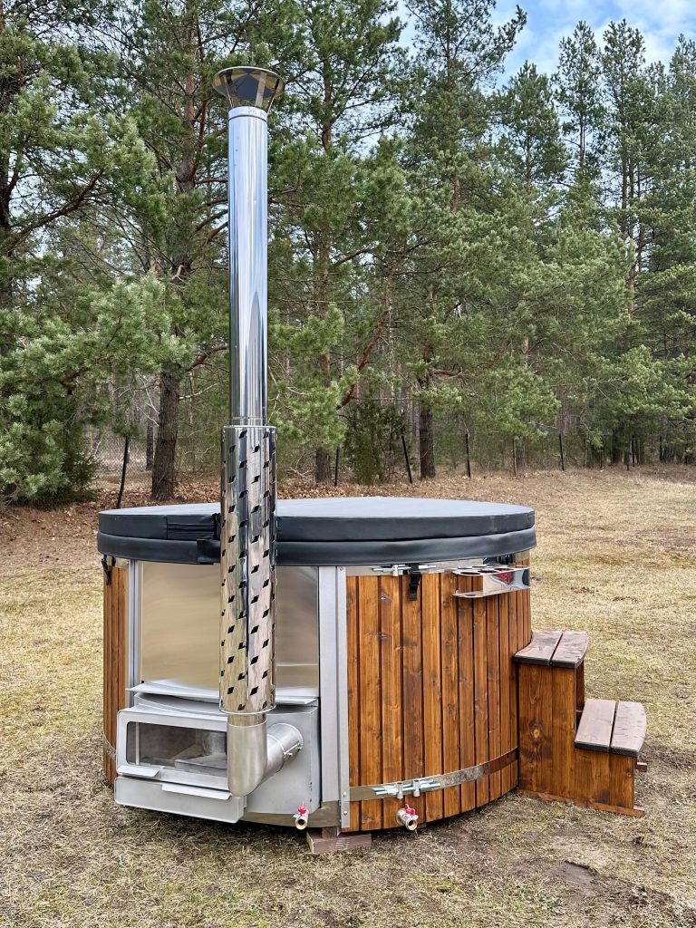 Integrierte Heizungen bieten eine schnellere Aufheizzeit als externe holzbefeuerte Öfen, da fast keine Wärme entweicht. Einer der größten Vorteile integrierter Heizgeräte ist die externe Holzscheitzufuhr. Die externe Zuführung ermöglicht es Ihnen, Ihren Ofen sicher mit Holz zu beschicken und die Asche zu entfernen, ohne das Wasser zu verunreinigen. Ein integrierter Ofen ist im Inneren des Whirlpools versteckt und bildet eine Stufe oder, wie wir es nennen, einen Kinderstuhl, auf dem Kinder sitzen oder Erwachsene sich ausruhen können, was diesen Whirlpool perfekt für Familien macht.