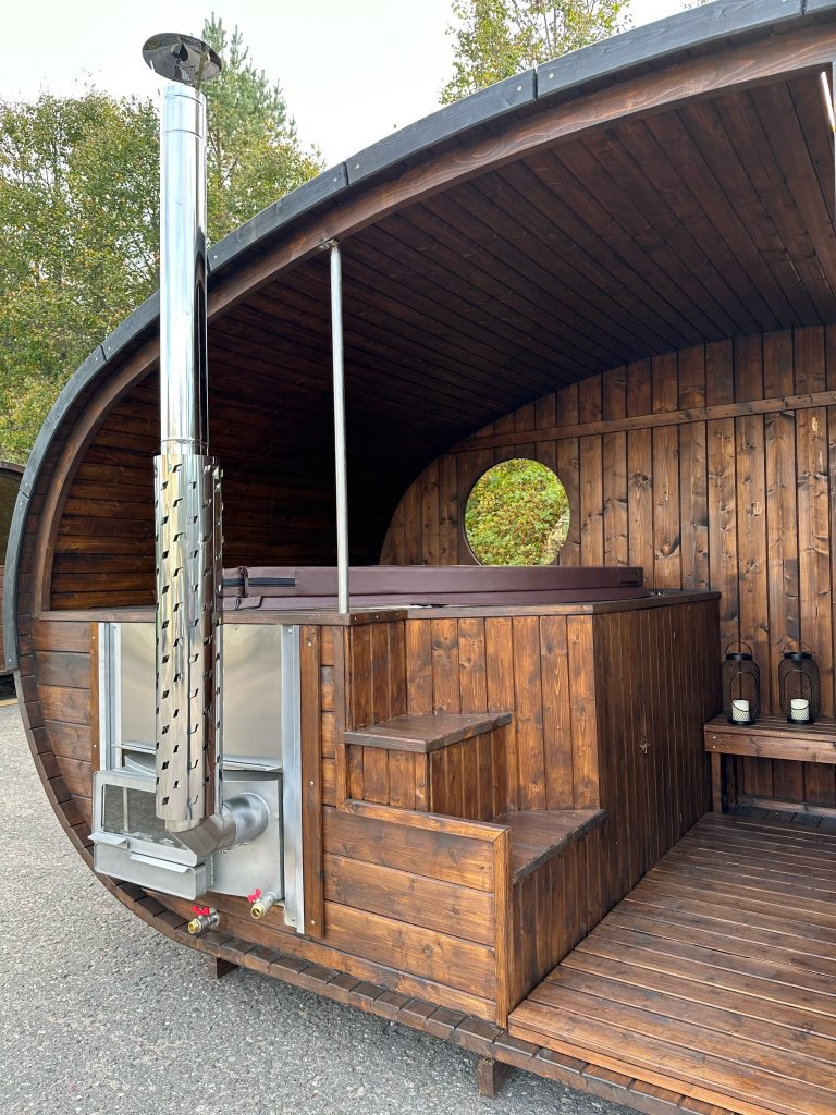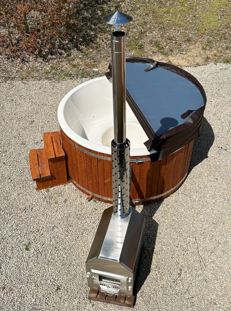 Ein externer holzbefeuerter Ofen bietet mehr Platz im Whirlpool und ist auch kinderfreundlicher, da der Ofen außerhalb des Whirlpools installiert wird. Allerdings benötigen Sie mehr Platz, um ihn aufzustellen. Die Reinigung des Whirlpools nimmt weniger Zeit in Anspruch, und es ist auch einfacher, die Asche aus dem externen Ofen zu entfernen, ohne das Wasser zu verschmutzen. Die Aufheizzeit des Whirlpools ist etwas länger (ca. 30 Minuten länger als bei einer internen Heizung). Externe Heizelemente sind auch etwas teurer. Außerdem müssen Sie sicherstellen, dass das Heizelement entleert ist, wenn Sie eisige Temperaturen erwarten.