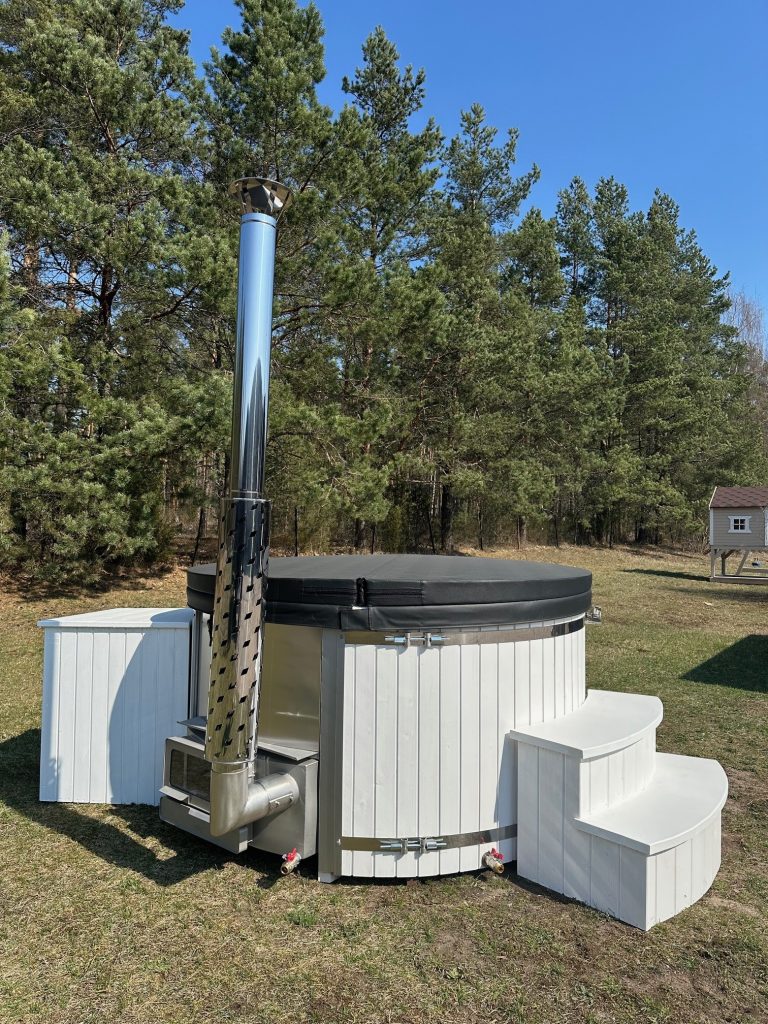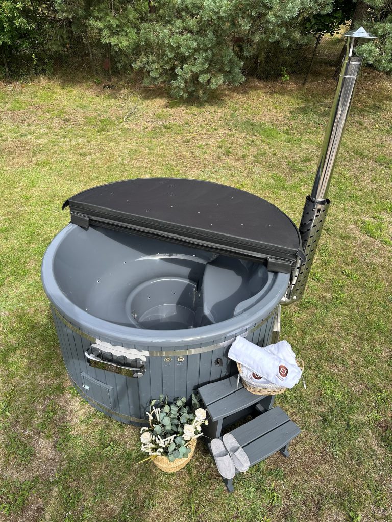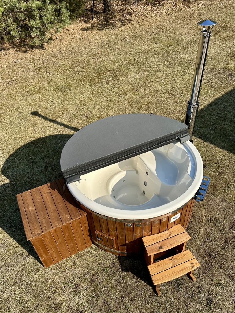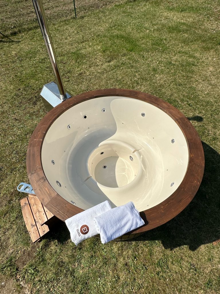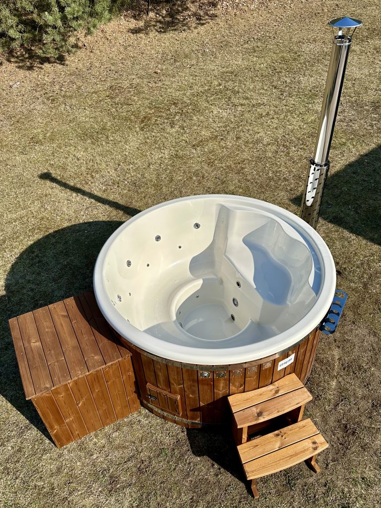 Wannen aus Fiberglas bieten ein optimales Preis-/Leistungsverhältnis. Der Vorteil dieser Wannen ist, dass die Holzverkleidung leicht ausgetauscht werden kann, ohne dass die gesamte Wanne ausgetauscht werden muss. Im Gegensatz zu anderen Wannen besteht der Whirlpool-Einsatz aus einem einzigen Stück Fiberglasgewebe mit gewölbten Bänken, wodurch Sie bis zu 500 Liter Wasser sparen können. Nur Fiberglas-Whirlpools verfügen über eine integrierte Heizung im Inneren, was ihnen ein besonders elegantes und luxuriöses Aussehen verleiht, außerdem gibt es keine zusätzlichen äußeren Details, die zusätzlichen Platz benötigen. Der Hot Tub aus Fiberglas ist ein langlebiges Produkt, das keine zusätzlichen Investitionen oder Kosten erfordert. Der Vorteil eines solchen Produkts ist eine extrem einfache Wartung.