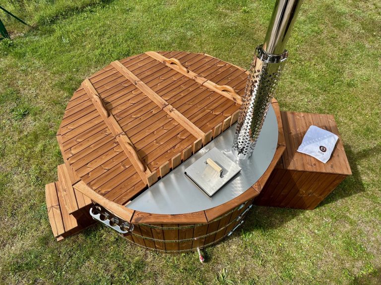 Ein externer holzbefeuerter Ofen bietet mehr Platz im Whirlpool und ist auch kinderfreundlicher, da der Ofen außerhalb des Whirlpools installiert wird. Allerdings benötigen Sie mehr Platz, um ihn aufzustellen. Die Reinigung des Whirlpools nimmt weniger Zeit in Anspruch, und es ist auch einfacher, die Asche aus dem externen Ofen zu entfernen, ohne das Wasser zu verschmutzen. Die Aufheizzeit des Whirlpools ist etwas länger (ca. 30 Minuten länger als bei einer internen Heizung). Externe Heizelemente sind auch etwas teurer. Außerdem müssen Sie sicherstellen, dass das Heizelement entleert ist, wenn Sie eisige Temperaturen erwarten.