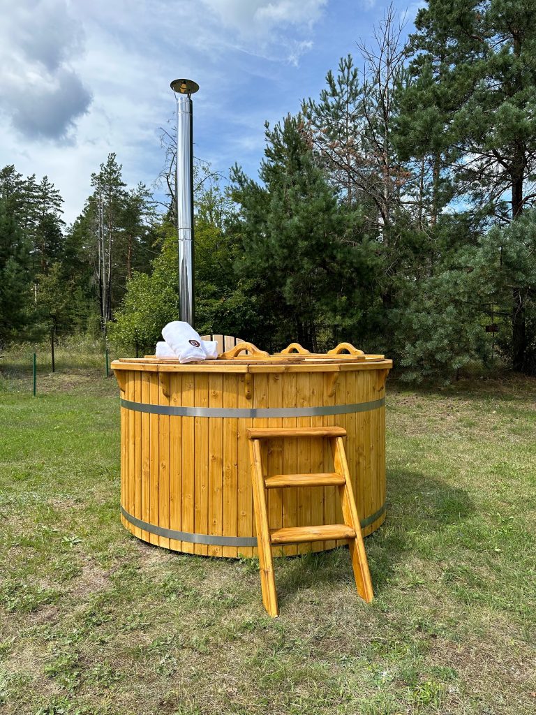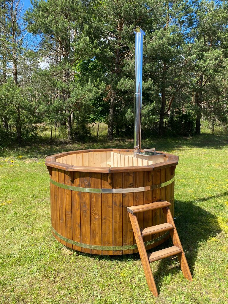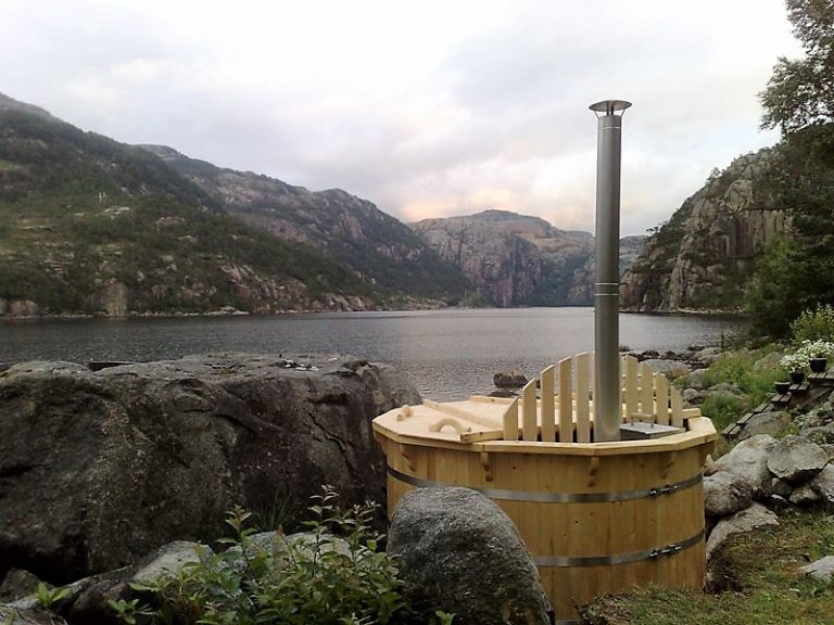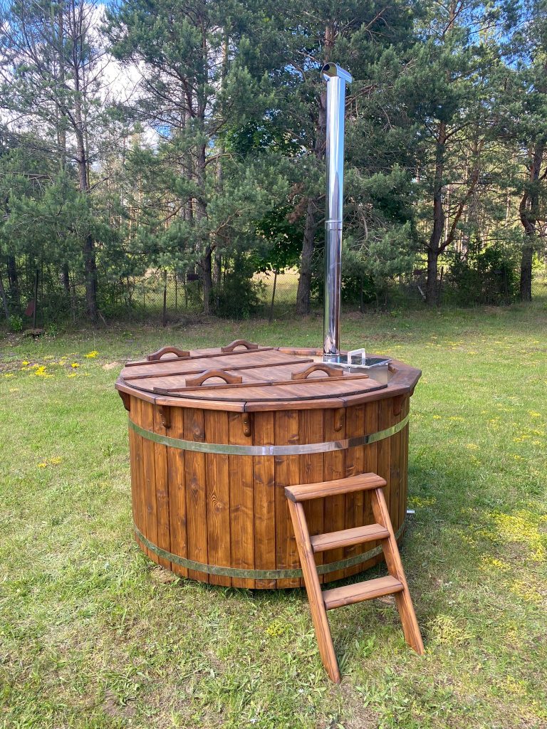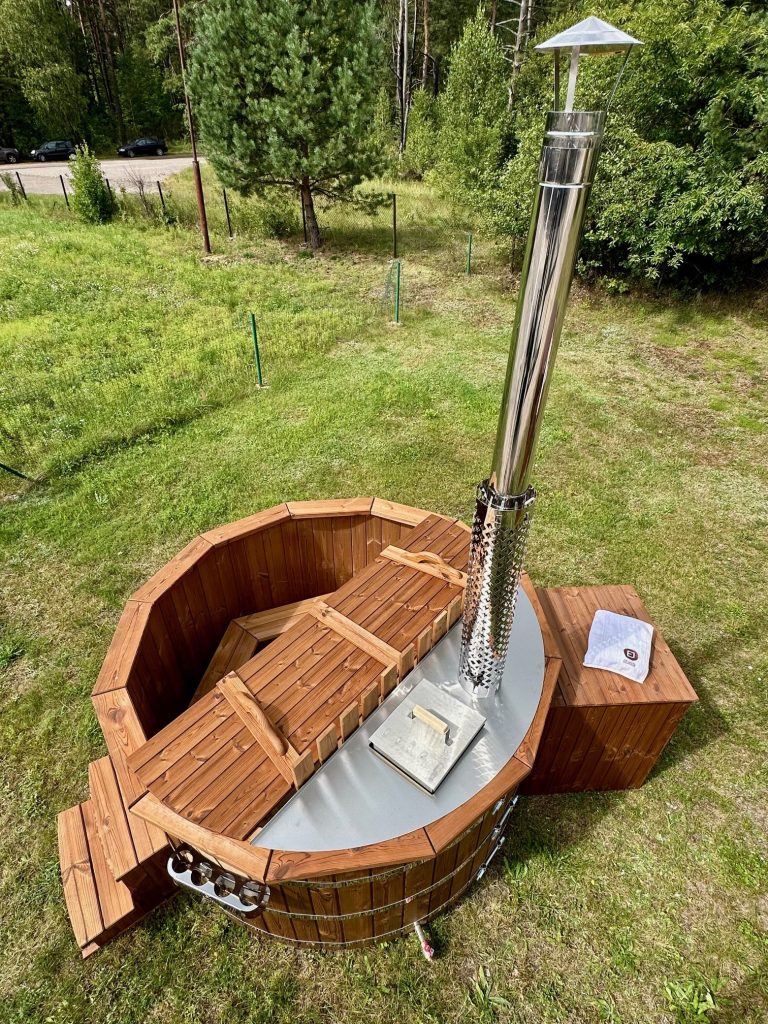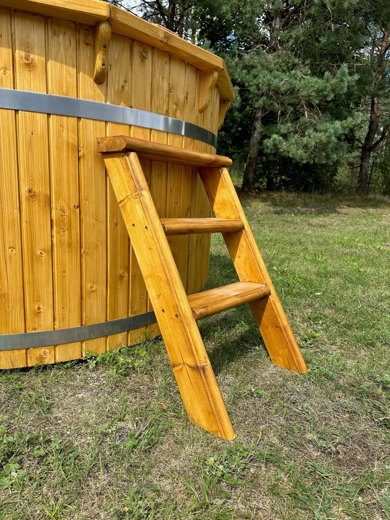 Der interne Ofen bietet eine schnellere Aufheizzeit als ein externer holzbefeuerter Ofen, da fast keine Wärme entweicht. Der Innenofen verbraucht etwa 25 % des Platzes in der Wanne, aber eine 180 cm lange Holzwanne kann immer noch bis zu 6 Personen beherbergen. Ein Innenofen bietet mehr Gemütlichkeit, da Sie nahe am Feuer sitzen können. Allerdings gibt es auch ein paar Nachteile – Innenöfen können für Kinder gefährlich sein, und auch die Reinigung nimmt mehr Zeit in Anspruch.