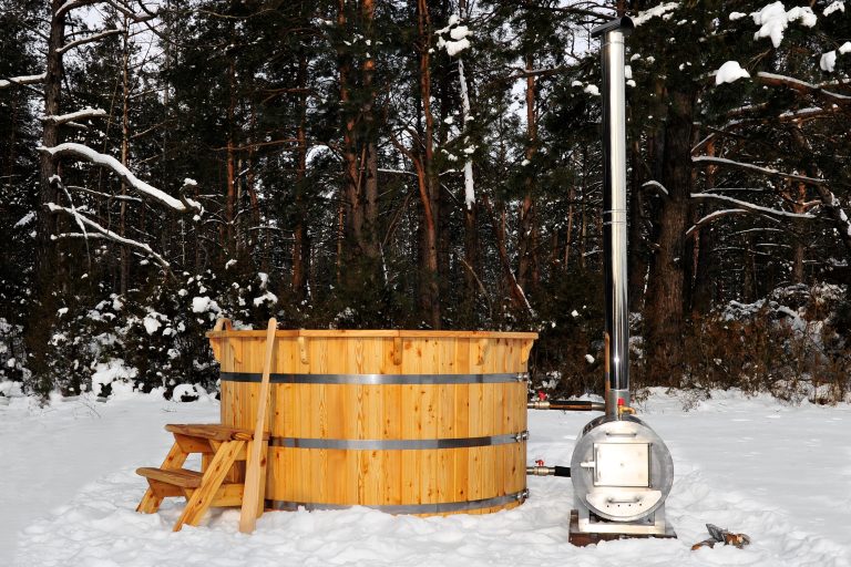Ein externer holzbefeuerter Ofen bietet mehr Platz im Whirlpool und ist auch kinderfreundlicher, da der Ofen außerhalb des Whirlpools installiert wird. Allerdings benötigen Sie mehr Platz, um ihn aufzustellen. Die Reinigung des Whirlpools nimmt weniger Zeit in Anspruch, und es ist auch einfacher, die Asche aus dem externen Ofen zu entfernen, ohne das Wasser zu verschmutzen. Die Aufheizzeit des Whirlpools ist etwas länger (ca. 30 Minuten länger als bei einer internen Heizung). Externe Heizelemente sind auch etwas teurer. Außerdem müssen Sie sicherstellen, dass das Heizelement entleert ist, wenn Sie eisige Temperaturen erwarten.