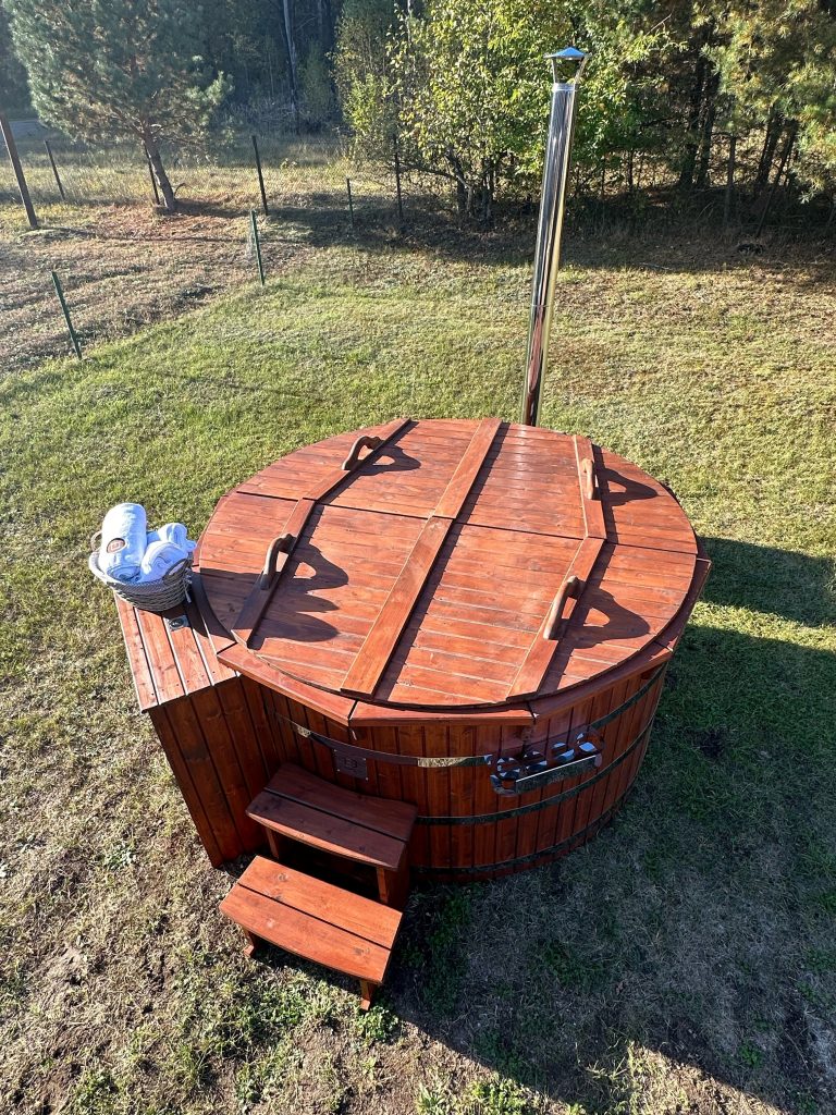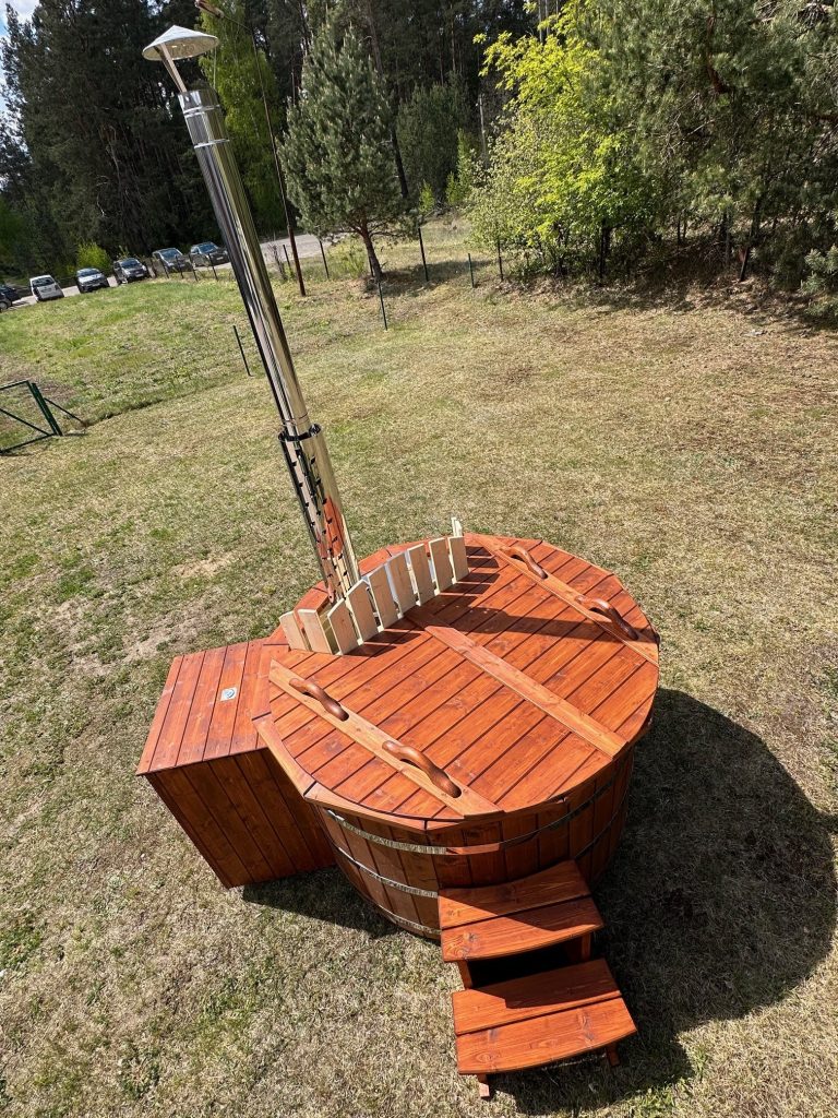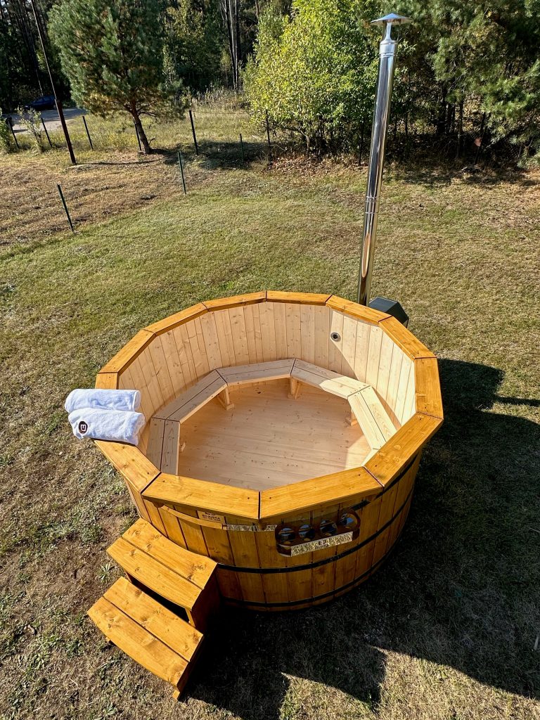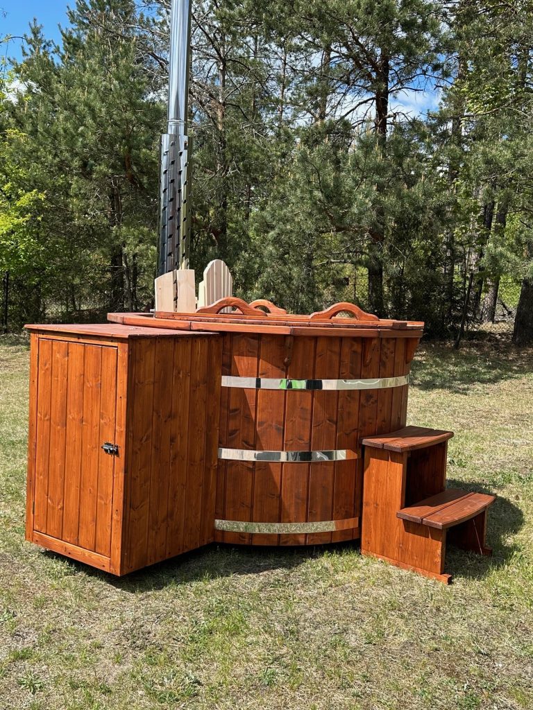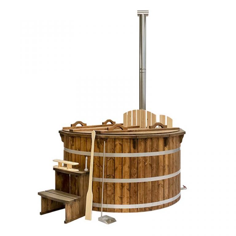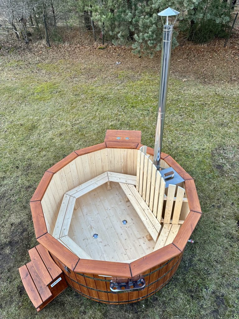 Der interne Ofen bietet eine schnellere Aufheizzeit als ein externer holzbefeuerter Ofen, da fast keine Wärme entweicht. Der Innenofen verbraucht etwa 25 % des Platzes in der Wanne, aber eine 180 cm lange Holzwanne kann immer noch bis zu 6 Personen beherbergen. Ein Innenofen bietet mehr Gemütlichkeit, da Sie nahe am Feuer sitzen können. Allerdings gibt es auch ein paar Nachteile – Innenöfen können für Kinder gefährlich sein, und auch die Reinigung nimmt mehr Zeit in Anspruch.