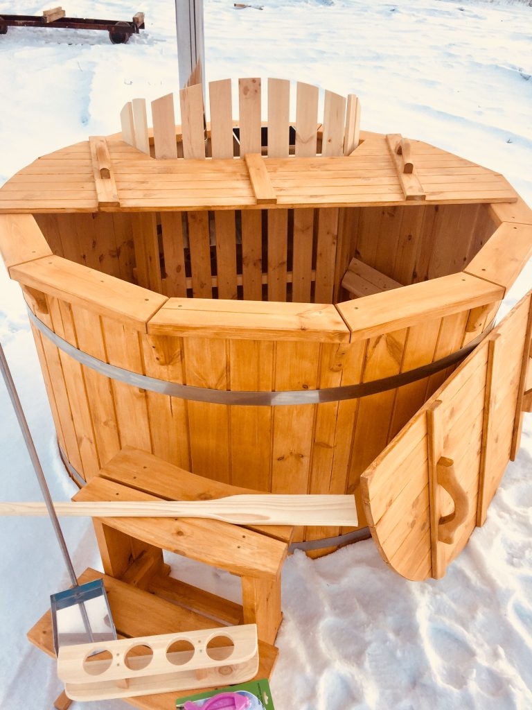 - Badezuber aus Holz (42 mm Holzstärke).