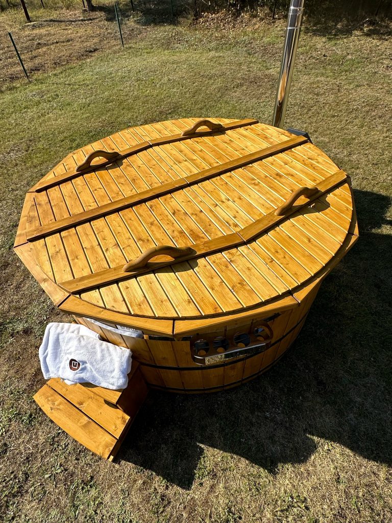 Unsere Holz-Whirlpools sind umweltfreundlich, denn sie werden aus natürlichem Holz hergestellt, mit Hilfe natürlicher Stoffe vor Feuchtigkeit geschützt und mit Edelstahlgurten befestigt.