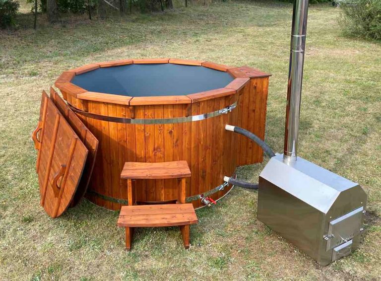 Ein externer holzbefeuerter Ofen bietet mehr Platz im Whirlpool und ist auch kinderfreundlicher, da der Ofen außerhalb des Whirlpools installiert wird. Allerdings benötigen Sie mehr Platz, um ihn aufzustellen. Die Reinigung des Whirlpools nimmt weniger Zeit in Anspruch, und es ist auch einfacher, die Asche aus dem externen Ofen zu entfernen, ohne das Wasser zu verschmutzen. Die Aufheizzeit des Whirlpools ist etwas länger (ca. 30 Minuten länger als bei einer internen Heizung). Externe Heizelemente sind auch etwas teurer. Außerdem müssen Sie sicherstellen, dass das Heizelement entleert ist, wenn Sie eisige Temperaturen erwarten.