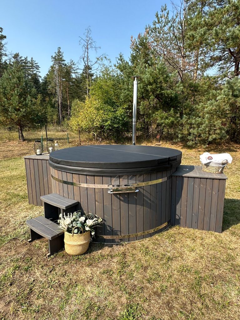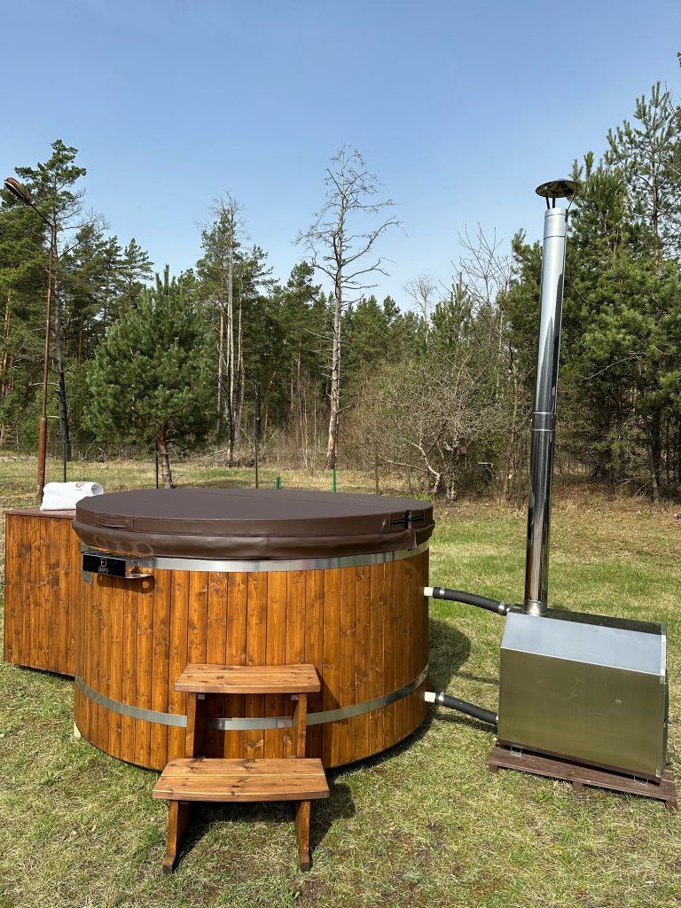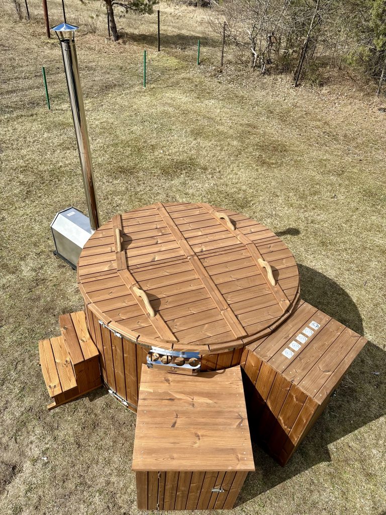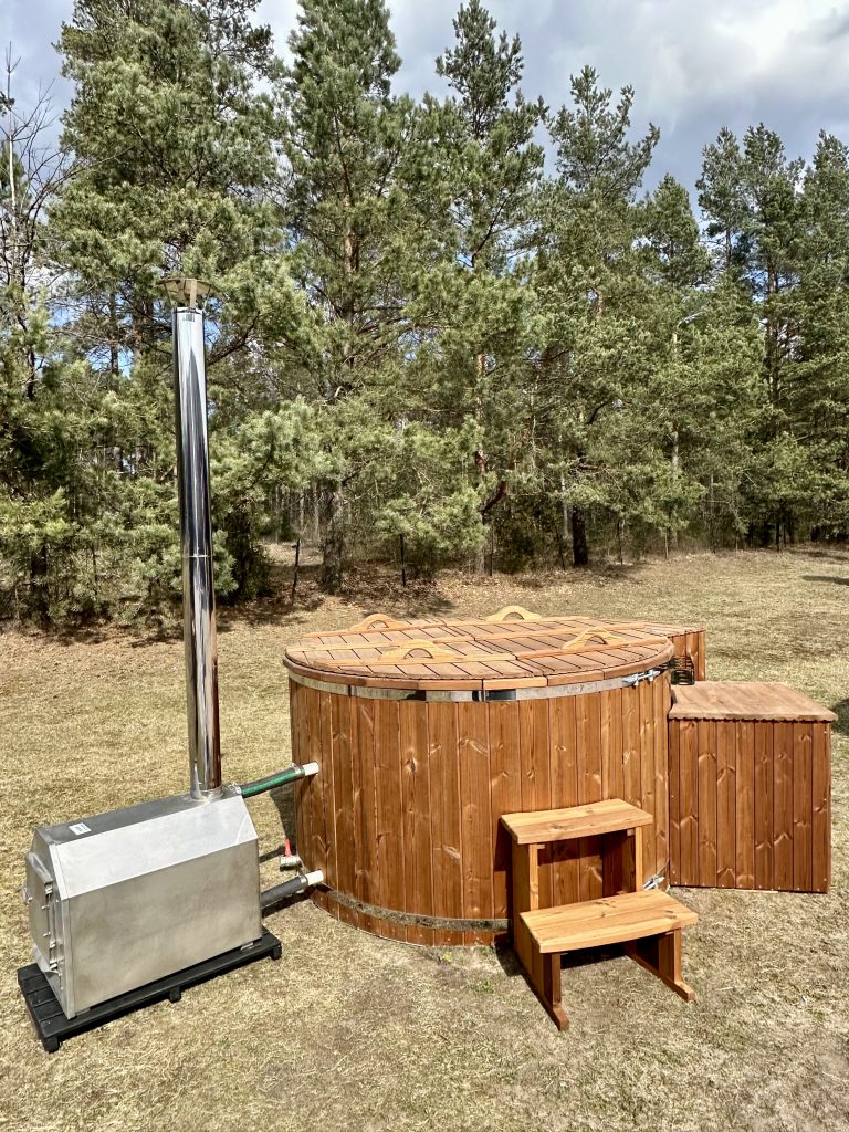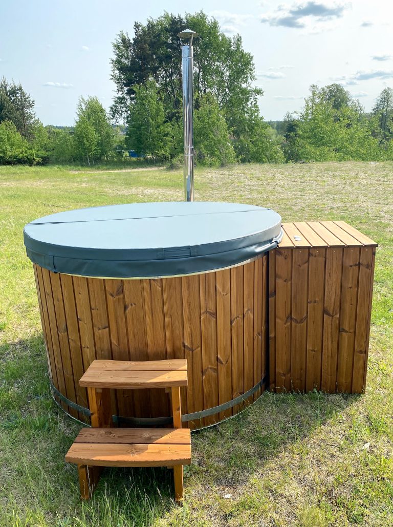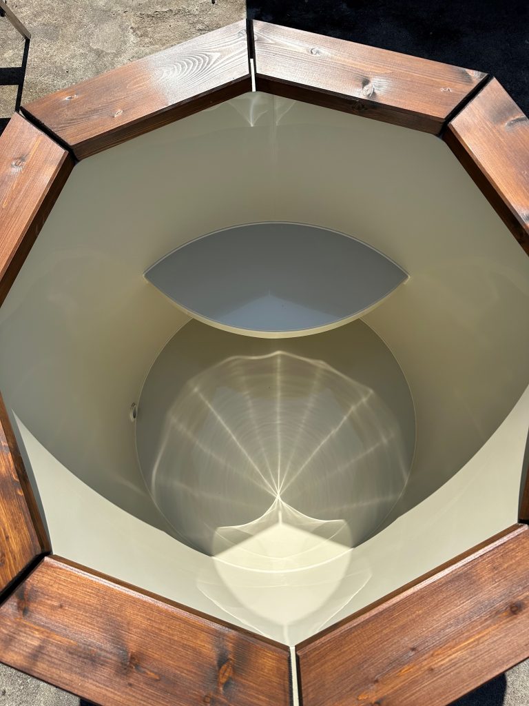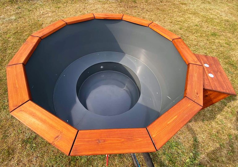 Der interne Ofen bietet eine schnellere Aufheizzeit als ein externer holzbefeuerter Ofen, da fast keine Wärme entweicht. Der Innenofen verbraucht etwa 25 % des Platzes in der Wanne, aber eine 180 cm lange Holzwanne kann immer noch bis zu 6 Personen beherbergen. Ein Innenofen bietet mehr Gemütlichkeit, da Sie nahe am Feuer sitzen können. Allerdings gibt es auch ein paar Nachteile – Innenöfen können für Kinder gefährlich sein, und auch die Reinigung nimmt mehr Zeit in Anspruch.