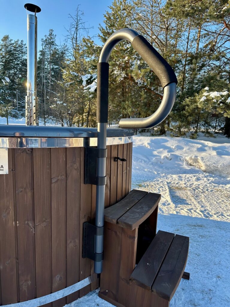 Der interne Ofen bietet eine schnellere Aufheizzeit als ein externer holzbefeuerter Ofen, da fast keine Wärme entweicht. Der Innenofen verbraucht etwa 25 % des Platzes in der Wanne, aber eine 180 cm lange Holzwanne kann immer noch bis zu 6 Personen beherbergen. Ein Innenofen bietet mehr Gemütlichkeit, da Sie nahe am Feuer sitzen können. Allerdings gibt es auch ein paar Nachteile – Innenöfen können für Kinder gefährlich sein, und auch die Reinigung nimmt mehr Zeit in Anspruch.