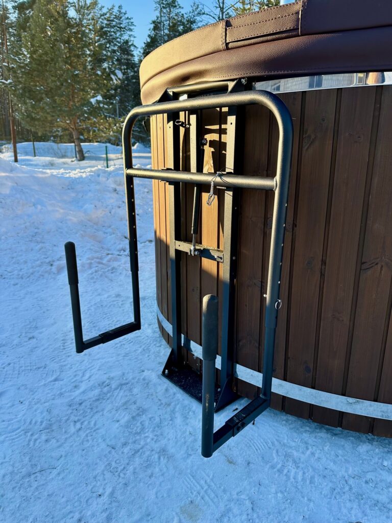 - Zweiteilige Holzabdeckung für den Whirlpool.