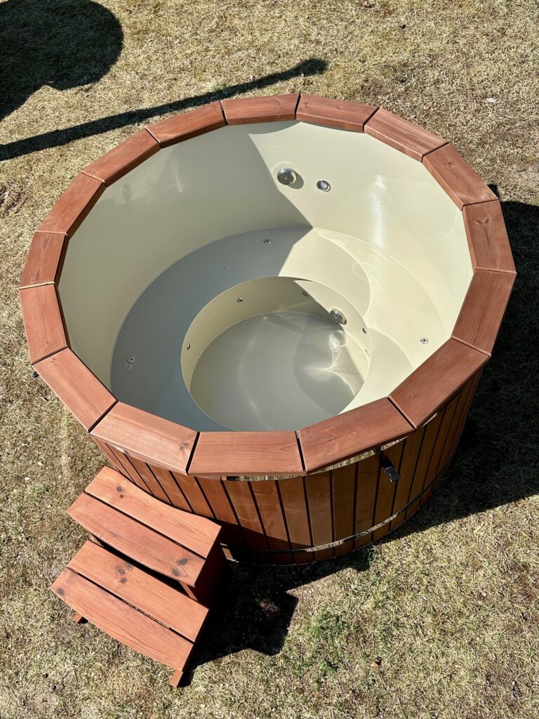 Diese Whirlpools haben eine Kunststoffauskleidung aus hochwertigem Polypropylen, das auch für die Herstellung von Außenpools verwendet wird. Es ist widerstandsfähig gegen kaltes Wetter, UV-Strahlen und andere Umwelteinflüsse. Kunststoff-Whirlpools sind hygienischer als Holz-Whirlpools, da Sie das Wasser jedes Mal nach der Benutzung ablassen können, während das natürliche Aussehen eines Holz-Whirlpools von außen erhalten bleibt.