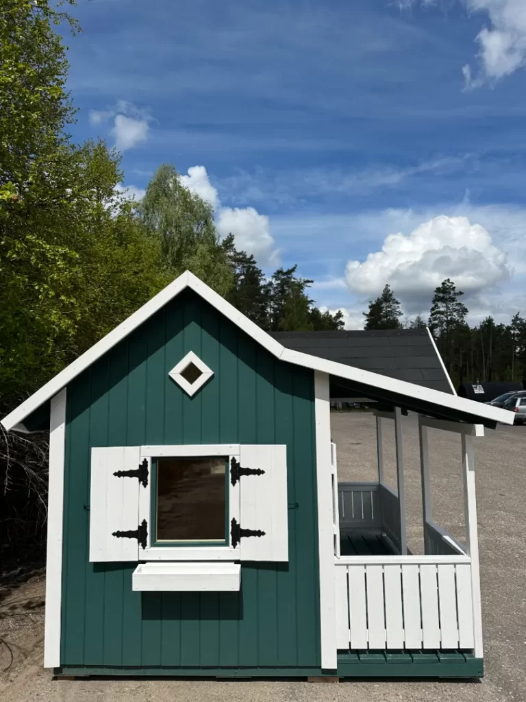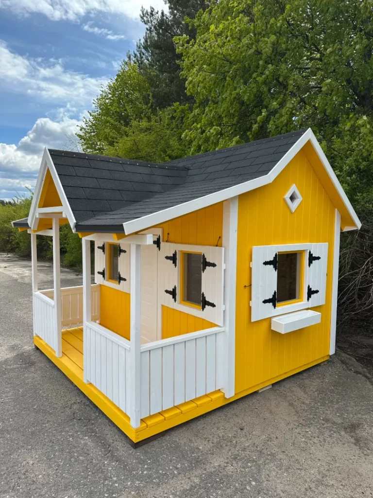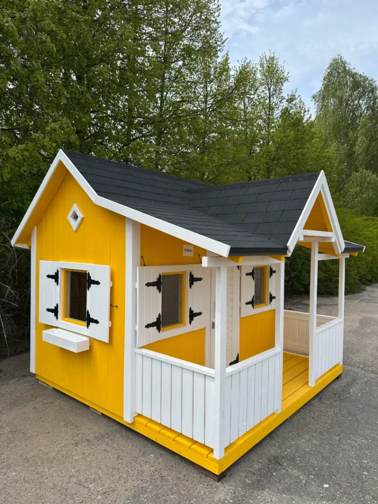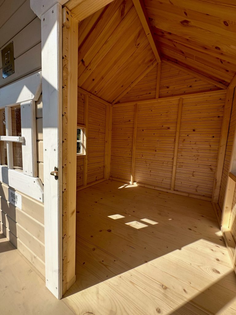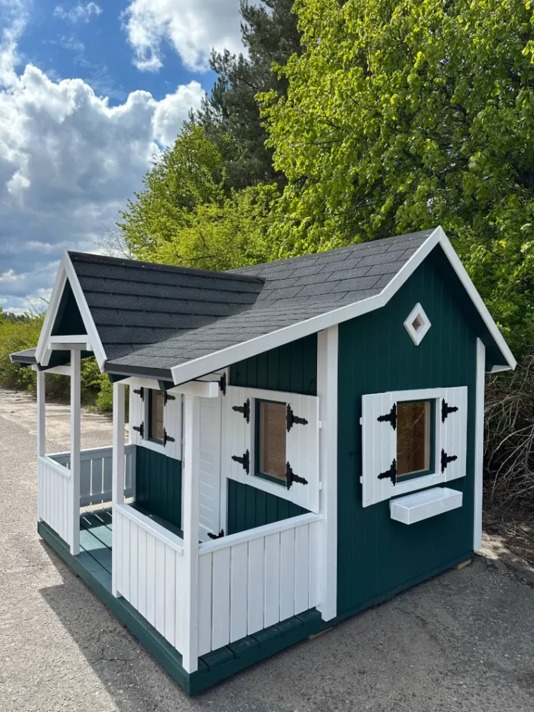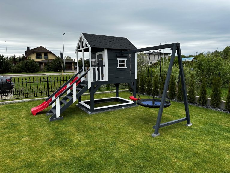 Fabelhaftes Spielhaus mit Schaukel aus Holz für aktive Kinder. Die Kinder können sich mit zwei Gurt-Schaukeln austoben und den Fahrtwind genießen, bevor sie die 2 Meter lange, rasante Rutsche hinuntersausen. Wenn es Zeit ist, sich auszuruhen, zu entspannen oder sich vor Regen zu schützen – das große Spielhaus steht direkt bereit.